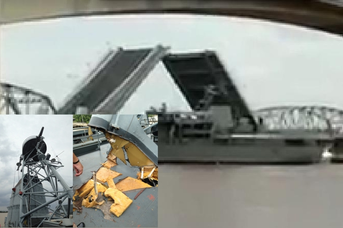 จากกรณีเมื่อช่วงบ่ายวันที่ 3 ส.ค.มีผู้ใช้งานเฟซบุ๊กชื่อ “โยธาท้องถิ่น” โพสต์ภาพและคลิปวีดีโอระบุเป็นภาพเรือรบสุรินทร์ เสากระโดงชนสะพานกรุงเทพ จนเสาหักได้รับความเสียหายขณะแล่นมาตามแม่น้ำเจ้าพระยาในช่วงที่สะพานกรุงเทพเปิดให้เรือแล่นผ่านเป็นเหตุให้ประชาชนเกิดความตระหนกตกใจแชร์คลิปดังกล่าวไปจำนวนมาก ความคืบหน้าเมื่อเวลา 17.00 น.วันที่ 3 ส.ค. พ.ต.อ.ธวัชชัย ศรีสุรางค์ ผกก.สน.บุคคโล สั่งการให้ พ.ต.ท.ชยันต์ เบญจาธิกุล รอง ผกก.จร.สน.บุคคโล ร่วมเดินทางไปตรวจสอบพร้อม ร.ต.อ.สุกุลวัฒน์ บัวกอง รอง สว.จร.สน.บางคอแหลม โดยนำกำลังเจ้าหน้าที่ไปสำรวจตลอดสองฟากฝั่งสะพานกรุงเทพ เบื้องต้นไม่พบเรือดังกล่าวแต่อย่างใด พบเพียงร่องรอยเหล็กราวสะพานฝั่งมุ่งหน้าแยกบุคคโลหักได้รับความเสียหายเล็กน้อยซึ่งเจ้าหน้าที่กรมทางหลวงชนบทนำเหล็กมากั้นทำสัญลักษณ์เอาไว้เพื่อรอการซ่อมแซมแล้ว อย่างไรก็ตามเมื่อผู้สื่อข่าวโทรศัพท์ไปสอบถามห้องวิทยุ สน.บางคอแหลม ทราบว่าตลอดทั้งวันยังไม่มีการประสานขอกำลังตำรวจไปอำนวยความสะดวกเรื่องการเปิดสะพานให้เรือผ่าน ที่สำคัญยังไม่มีการแจ้งเหตุเรือชนสะพานได้รับความเสียหาย จึงเชื่อว่าภาพเหตุการณ์ดังกล่าวน่าจะเกิดขึ้นนานแล้ว โดยน่าจะเป็นช่วงที่เรือกำลังจะมุ่งหน้าเข้าสู่อู่ซ่อมบำรุงที่อยู่ติดลำน้ำย่านถนนเจริญกรุง แล้วเกิดอุบัติเหตุเฉี่ยวชนกับขอบสะพานจนเรือได้รับความเสียหายแต่ยังสามารถแล่นมุ่งหน้าเข้าอู่ซ่อมบำรุงต่อไปได้ จึงไม่ได้มีความแจ้งความเอาไว้กับทางตำรวจ