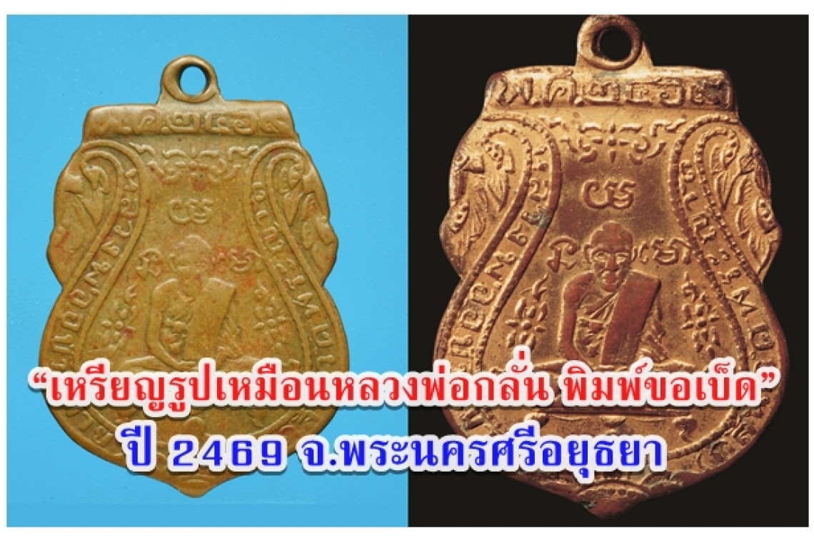 เหรียญรูปเหมือนหลวงพ่อกลั่น ปี 2469 หรือ ที่เรียกกันว่า “เหรียญรูปเหมือน พิมพ์ขอเบ็ด” วัดพระญาติการาม จ.พระนครศรีอยุธยา นับเป็นเหรียญที่ได้รับการยกย่องจากแวดวงนักนิยมสะสมพระเครื่องและเหรียญคณาจารย์ให้เป็น 1 ใน 5 อันดับเหรียญพระสงฆ์ยอดนิยมที่มีค่านิยมสูง ด้วยความงดงามทางพุทธลักษณะและความเป็นเลิศทางพุทธคุณ พระเกจิอาจารย์ผู้ทำการปลุกเสก ก็คือ หลวงพ่อกลั่น ธมมโชโต พระเกจิผู้ทรงคุณวิเศษและมีชื่อเสียงโด่งดังรูปหนึ่งของจังหวัด หาดูหาเช่ายากมากในปัจจุบัน