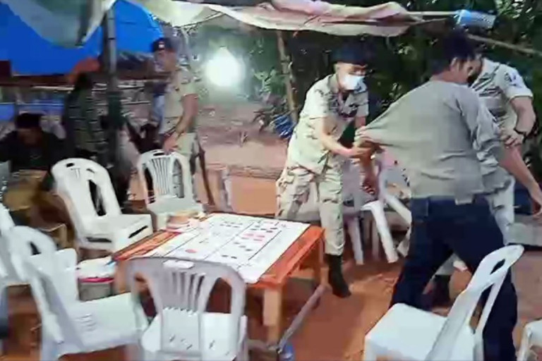 เมื่อเวลา 17.00 น.วันที่ 14 ม.ค.นายสนิท ขาวสอาด ผู้ว่าราชการจังหวัดบึงกาฬ ได้รับแจ้งจากชาวบ้านว่ามีการลักลอบเล่นการพนันในป่าสวนยางพารา ติดกับบ่อขยะพื้นที่บ้านห้วยเสื่อมใต้หมู่ที่ 2 ต.ชัยพร อ.เมืองบึงกาฬ จ.บึงกาฬ จึงได้สั่งการให้ นายชัยณรงค์ สุระดะนัย ป้องกันจังหวัดบึงกาฬ สนธิกำลังกับ พ.ต.อ.วิชยานนท์ นิติกุล ผกก.สภ.เมืองบึงกาฬ พ.ต.ท.จรูญศักดิ์ ลำพุทธา รอง ผกก.สส.พ.ต.ท.อดุลย์ ฉิมทับ รอง ผกก.ป.และนายชาญฤๅเดท สมิงกล้าทัพ ผบ.กองร้องอาสารักษาดินแดนจังหวัดบึงกาฬ นำกำลังเดินทางไปในสวนยางพาราดังกล่าว พบนักพนันกำลังก้มหน้าก้มตามั่วสุมกันแทงไฮโลอย่างหน้าดำคล่ำเครียดอยู่หลายวง จึงได้แสดงตัวเข้าจับกุม