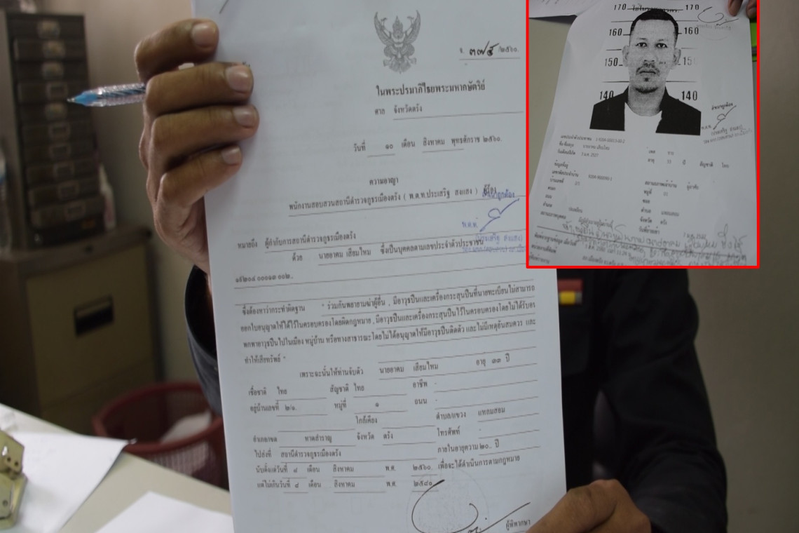 พ.ต.ท.ประเสริฐ สงแสง รองผกก.สอบสวน สภ.เมืองตรัง เจ้าของคดี กล่าวว่า” คนร้ายที่ออกหมายจับใน วันนี้เป็นคนที่ใช้อาวุธปืน เอ็ม16 ยิงถล่มรถของผู้เสียหาย ส่วนรถยนต์คันดังกล่าวได้มีผู้หวังดีแจ้งเบาะแส ว่าพบรถต้องสงสัยจอดอยู่ในท้องที่ ส.ภ.บ้านหนองเอื้อง ต.ปะเหลียน อ.ปะเหลียน จากนั้นชุดสายสืบเข้าไปติดตามยึดมาเพื่อจะประกอบสำนวนคดี ส่วนป้ายทะเบียนนั้นเจ้าหน้าที่ตำรวจกำลังตรวจสอบว่าตรงกับทะเบียนรถแท้จริงหรือไม่ จากการตรวจสอบภายในรถยนต์คันดังกล่าวพบปลอกกระสุนปืน เอ็ม 16 และ 11 มม อย่างละ1ปลอก ผู้ต้องหารายนี้คือนายอาคม เสียมไหมมีประวัติอาชญากรรม เพิ่งพ้นโทษออกมาจากเรือนจำจังหวัดตรังเมื่อปี 2559 และเมื่อ 2 สัปดาห์ที่ผ่านมาเจ้าหน้าที่ตำรวจมีการตรวจยึดยาเสพติด 80,000.เม็ด รายงานการสืบสวนพบว่าเกี่ยวข้องกับนายอาคม เสียมไหมอีกด้วย