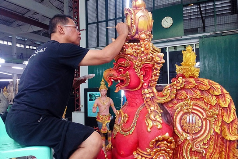“การเชิญศิลปินจิตอาสาภาคเหนือ นำโดยอาจารย์เฉลิมชัย มาเสริมเพื่อให้งานเสร็จก่อนเวลา คาดว่างานที่มอบหมายให้ลงสีจะเสร็จทั้งหมดภายใน 7 วันนี้ เพราะศิลปินทุกคนกระตือรือร้นถวายงานแด่ในหลวง ร.9 อย่างไรก็ดี ผมวางแผนไว้ หากงานกระชั้นชิด ต้องเพิ่มจำนวนคนและเพิ่มความสามารถในการทำงาน เพราะเรายังรองานปั้นชุดสุดท้าย รวมถึงสัตว์หิมพานต์กลุ่มช่างเมืองเพชรบุรีที่เหลืออีก 30 ตัว จำเป็นต้องมีเครือข่ายเป็นพลังสำรองไว้ เมื่อขนย้ายมาลงสีพร้อมทำงานได้ทันที" นายสุรัฐกิจ กล่าว