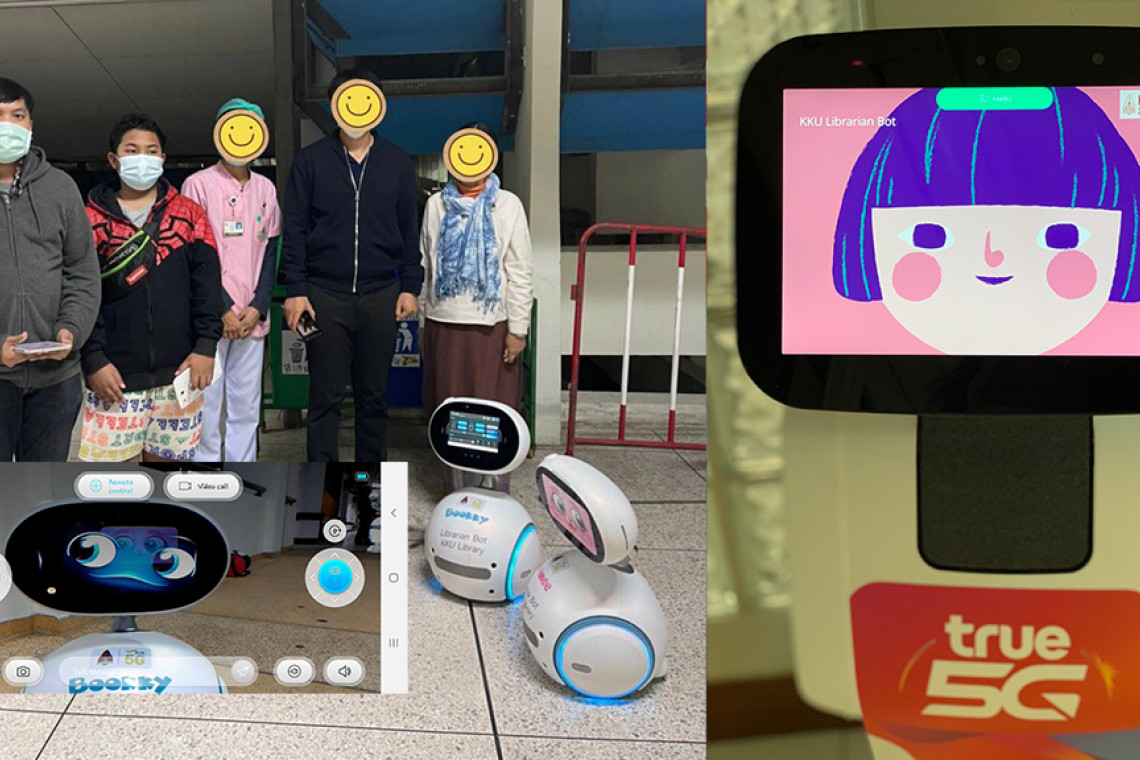 สำนักหอสมุด มหาวิทยาลัยขอนแก่น ส่งหุ่นยนต์บรรณารักษ์ ประกอบด้วย น้องบันนี่และบุ๊คกี้ และน้องเทมิ กลับเข้าประจำการอีกครั้ง ในการสนับสนุนการทำงานของคุณหมอคุณพยาบาลและบุคลากรทางการแพทย์ เพื่ออำนวยความสะดวกในการปฏิบัติหน้าที่ในช่วงการระบาดของโรคติดต่อเชื้อไวรัสโคโรน่า 2019 (COVID -19) ระลอกใหม่ ณ โรงพยาบาลศรีนครินทร์ คณะแพทยศาสตร์ มหาวิทยาลัยขอนแก่น โดยมี นายภานุวัตร อุทัยบาล นักเอกสารสนเทศ มหาวิทยาลัยขอนแก่น ถ่ายทอดการสั่งงานหุ่นยนต์ผ่าน Smart phone และ Tablet