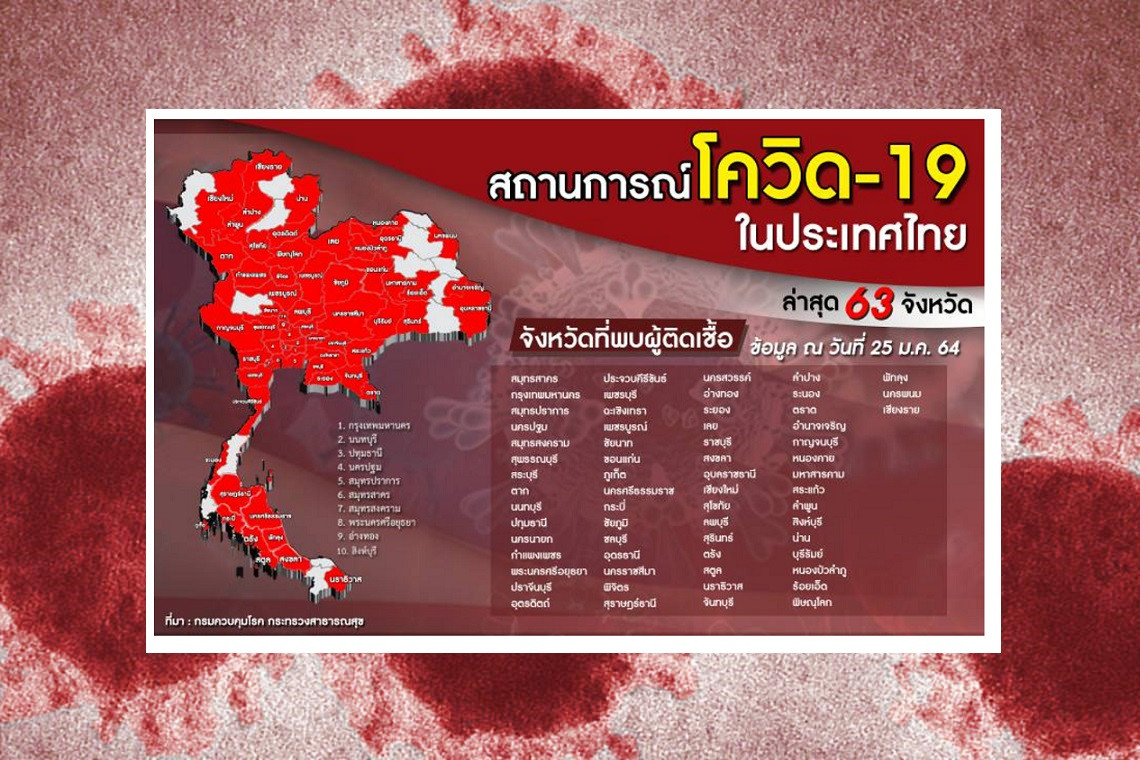 โดยสรุปสถานการณ์โควิด-19 ทั่วประเทศไทย ได้ดังนี้ มีผู้ติดเชื้อรายใหม่ 187 ราย ทำให้มีผู้ติดเชื้อรวมทั้งหมดเป็น 63 จังหวัดทั่วเมืองไทย ประกอบด้วย ภาคกลาง -กรุงเทพมหานคร -นครนายก -กำแพงเพชร -ชัยนาท -นครปฐม -นนทบุรี-ปทุมธานี -พระนครศรีอยุธยา -เพชรบูรณ์-พิจิตร -พิษณุโลก -สมุทรสาคร -สมุทรปราการ -สมุทรสงคราม -สุพรรณบุรี -ลพบุรี -สิงห์บุรี -สุโขทัย -อ่างทอง -นครสวรรค์ -ราชบุรี -กาญจนบุรี ภาคตะวันออก ประกอบด้วย -ฉะเชิงเทรา -ปราจีนบุรี -ชลบุรี -ระยอง -จันทบุรี -สระแก้ว -ตราด ภาคเหนือ ประกอบด้วย-เชียงราย-เชียงใหม่ น่าน-ลำปาง-ลำพูน -อุตรดิตถ์