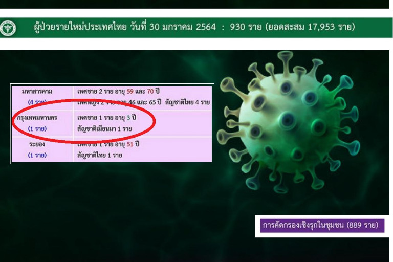 วันที่ 30 ม.ค.2564 ศูนย์บริหารสถานการณ์การแพร่ระบาดของโรคติดเชื้อไวรัสโคโรนา 2019 (ศบค.) รายงานตัวเลขผู้ติดเชื้อไวรัสโควิด-19 ในพื้นที่กรุงเทพมหานคร (กทม.) พบมีผู้ติดเชื้อใหม่ 4 รายเป็นการติดเชื้อภายในประเทศจากการไปพื้นที่เสี่ยง มีอาชีพเสี่ยง หรือสัมผัสกับผู้ติดเชื้อก่อนหน้านี้ จำนวน 3 ราย ประกอบด้วยเพศชาย 2 ราย อายุ 21 และ 32 ปี  เพศหญิง 1 ราย อายุ 34 ปี เป็นสัญชาติไทย 3 ราย  ซึ่งไม่มีอาการ 1 ราย และมีอาการ 2 ราย รักษาตัวที่โรงพยาบาลเอกชนในกทม. 1 ราย โรงพยาบาลวชิรพยาบาล 1 ราย และโรงพยาบาลเลิศสิน 1 ราย นอกจากนี้ยังเป็นการคัดกรองเชิงรุกในชุมชน อีกจำนวน 1 ราย เป็นเพศชาย อายุ 3 ปี สัญชาติเมียนมา รักษาตัวที่สถาบันสุขภาพเด็กมหาราชินี ทำให้ตัวเลขผู้ติดเชื้อสะสมในกรุงเทพฯ (18 ธ.ค. 2563 – 30 ม.ค. 2564) รวมแล้วอยู่ที่ 749 ราย เป็นอับดับ 2 รองจากสมุทรสาคร