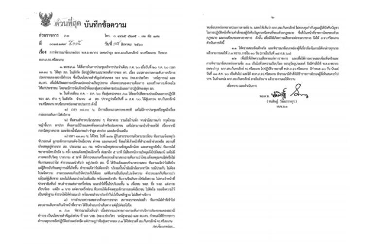 3.2 เพื่อไม่ให้เกิดความเสียหายแก่ทางราชการ และเพื่อให้การตรวจสอบข้อเท็จจริง และการพิจารณาข้อบกพร่องตาม(ข้อ 3.1) เป็นไปด้วยความเรียบร้อย บรรลุวัตถุประสงค์ จึงมีคำสั่งให้ พ.ต.อ.ชยากร เทศบำรุง ผกก. สภ.กันทรลักษณ์จว.ศรีสะเกษ ไปปฏิบัติราชการที่ ศปก ภ.จว.ศรีสะเกษ มีกำหนด 30 วัน นับตั้งแต่วันที่ 18 ส.ค.60 เป็นต้นไปและให้ ผบก.ภ.จว. ศรีสะเกษ พิจารณา มีคำสั่ง ให้ข้าราชการตำรวจ ผู้ที่เห็นสมควรไป รรท.ในตำแหน่ง ผกก.สภ.กันทรลักษ์ ภายในอำนาจ แล้วรายงานผลให้ทราบ เพื่อทราบและดำเนินการ