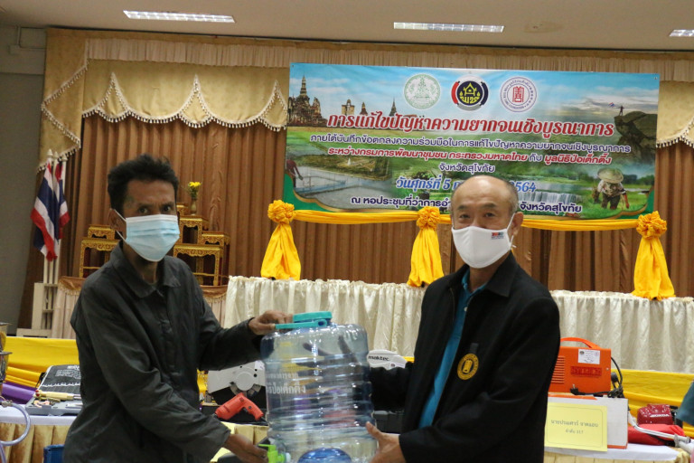 วันที่ 5 ก.พ.64 จ.สุโขทัย มูลนิธิป่อเต็กตึ๊ง นำโดย นายสุรพงษ์ เตชะหรูวิจิตร กรรมการและรองเลขาธิการ พร้อม นางจินดา บุญลาภทวีโชค กรรมการตรวจสอบ และ นายอรัณย์ โตทวด ผู้จัดการมูลนิธิฯ ร่วมมอบอุปกรณ์การประกอบอาชีพให้กับครัวเรือนยากจนภาคเหนือ จังหวัดสุโขทัย และพิษณุโลก รวม 23 ครัวเรือน คิดมูลค่าเป็นเงินทั้งสิ้น 323,920 บาท (สามแสนสองหมื่นสามพันเก้าร้อยยี่สิบบาทถ้วน) เพื่อส่งเสริม และสนับสนุนอาชีพแก่ครัวเรือนยากจนสามารถประกอบอาชีพเลี้ยงตนเองและครอบครัว ดำเนินชีวิตตามหลักปรัชญาเศรษฐกิจพอเพียง ภายใต้ ”บันทึกข้อตกลงความร่วมมือการแก้ไขปัญหาความยากจนเชิงบูรณาการ” ร่วมกับกรมการพัฒนาชุมชน กระทรวงมหาดไทย โดยมี นางสาวพัชรอร วงศ์กำแหง รองผู้ว่าราชการจังหวัดสุโขทัย และนายพิศิษฐ์ กิจบุญอนันต์ รองผู้ว่าราชการจังหวัดพิษณุโลก เป็นประธานร่วมในพิธี พร้อมด้วย นายนิวัติ น้อยผาง รองอธิบดีกรมการพัฒนาชุมชน ร่วมพิธี