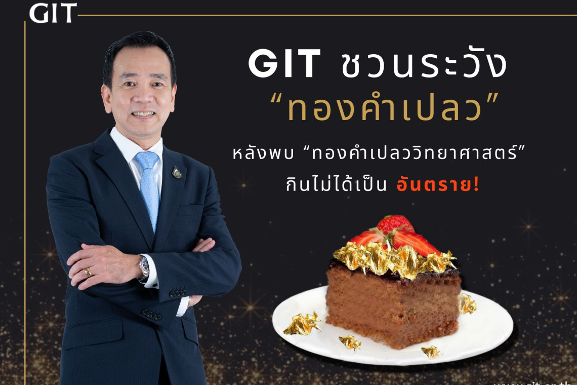 สถาบันวิจัยและพัฒนาอัญมณีและเครื่องประดับแห่งชาติ (องค์การมหาชน) หรือ GIT แนะผู้บริโภคซื้อที่ชอบรับประทานอาหาร Luxury ประดับทองคำเปลว ต้องตรวจสอบให้ดีหลังพบ “ทองคำเปลววิทยาศาสตร์” ซึ่งไม่ใช่ทองคำบริสุทธิ์ และบางครั้งปนเปื้อนโลหะหนัก และอาจเป็นอันตรายต่อสุขภาพ