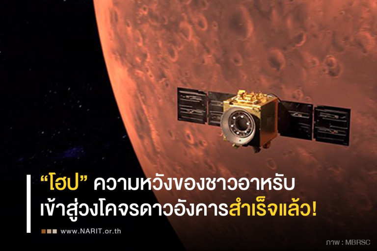 NARIT สถาบันวิจัยดาราศาสตร์แห่งชาติ โพสต์ผ่านเฟซบุ๊กระบุ “โฮป” ความหวังของชาวอาหรับ โคจรรอบดาวอังคารสำเร็จแล้ว !