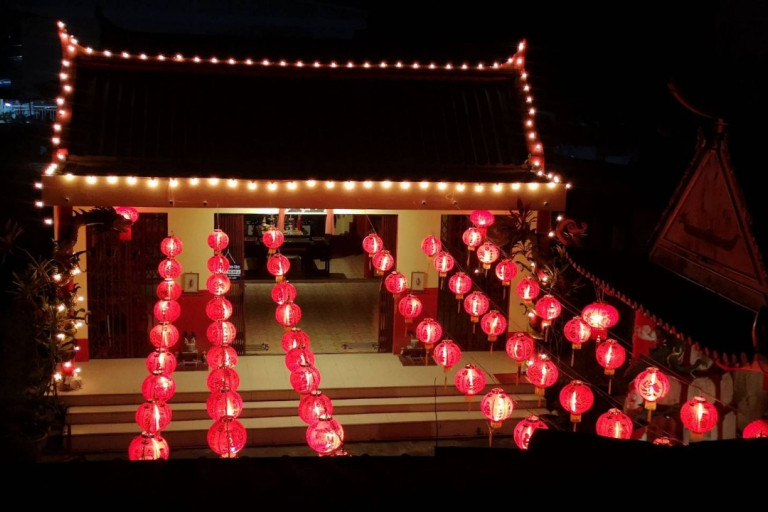 ศาลเจ้าเก่าแก่ร่วม 200 ปีเมืองกันตัง ประดับโคมไฟ เปิดศาลเจ้าให้ประชาชนไหว้พระขอพรเจ้าแม่ทับทิม (พระม๊าจ้อโป๋) ทำบุญเพื่อเป็นสิริมงคลแก่ครอบครัวรับเทศกาลตรุษจีน