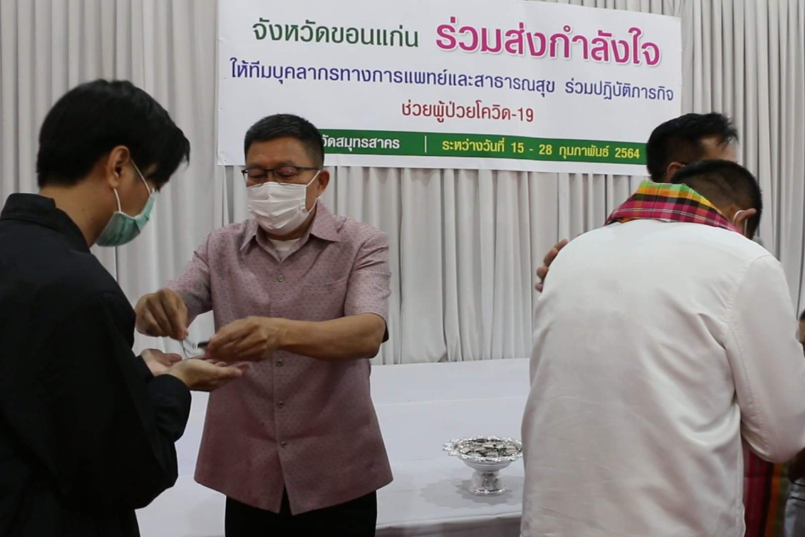 เมื่อเวลา 13.30 น.วันที่ 11 ก.พ. 2564 ที่วัดหนองแวง (พระอารามหลวง) อ.เมือง จ.ขอนแก่น นายสมศักดิ์ จังตระกุล ผวจ.ขอนแก่น พร้อมด้วย นพ. สมชายโชติ ปิยวัชร์เวลา นายแพทย์สาธารณสุขจังหวัดขอนแก่น พร้อมผู้นำหน่วยงานภาครัฐและภาคเอกชนในพื้นที่ ร่วมให้กำลังใจทีมปฏิบัติการฉุกเฉินทางการแพทย์ในภาวะภัยพิบัติ หรือ MERT ที่มีกำหนดเดินทางไปปฏิบัติหน้าที่ ที่ รพ.สนาม จ.สมุทรสาคร ตามการสับเปลี่ยนกำลังของเจ้าหน้าที่ตามที่กระทรวงสาธารณสุขกำหนด โดย