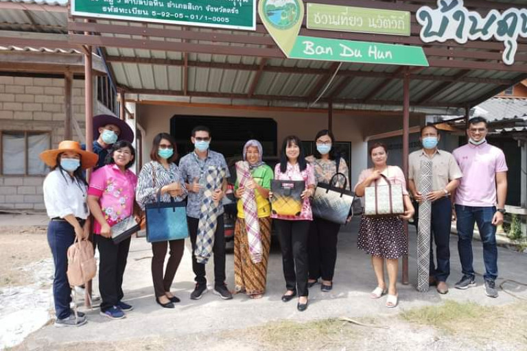 รวมทั้งประเด็นปัญหา (Hot Issue) ในการดำเนินงานในพื้นที่ ณ ห้องประชุมสำนักงานเกษตรอำเภอสิเกา คณะนิเทศได้ลงพื้นที่เยี่ยมเยียนวิสาหกิจชุมชนบ้านดุหุน ตั้งอยู่ ม.3 ต.บ่อหิน อ.สิเกา ซึ่งเกิดจากการรวมกลุ่มกันของชาวบ้านในหมู่บ้านเพื่อพัฒนาผลิตภัณฑ์จักสานจากเตยปาหนัน เป็นการผลิตเพื่อเพิ่มราย สินค้าที่ผลิตส่วนมากจัดทำเป็นกระเป๋าหลายรูปแบบ ความสวยงามต่างกัน จะวางจำหน่ายภายในจังหวัดตรังและจังหวัดใกล้เคียง รวมถึงส่งออกต่างประเทศ ซึ่งส่วนมากจะทำการตลาดแบบออนไลน์โดยใช้เพจเฟซบุ๊กเป็นหลัก สำหรับวัตถุดิบที่นำมาใช้ คือ ต้นเตยปาหนัน จะขึ้นในพื้นที่ชายทะเล คุณสมบัติมีความเหนียวนุ่ม ทนทาน ไม่ทำลายสภาพแวดล้อม เป็นพืชที่ขึ้นอยู่ในบริเวณหมู่บ้าน สามารถหาได้ง่าย จักสานเตยปาหนัน ถือเป็นภูมิปัญญาของชาวบ้าน บ้านดุหุน ซึ่งสร้างขึ้นด้วยฝีมือเชิงศิลปะ ที่แสดงออกมาอย่างปราณีตสวยงาม