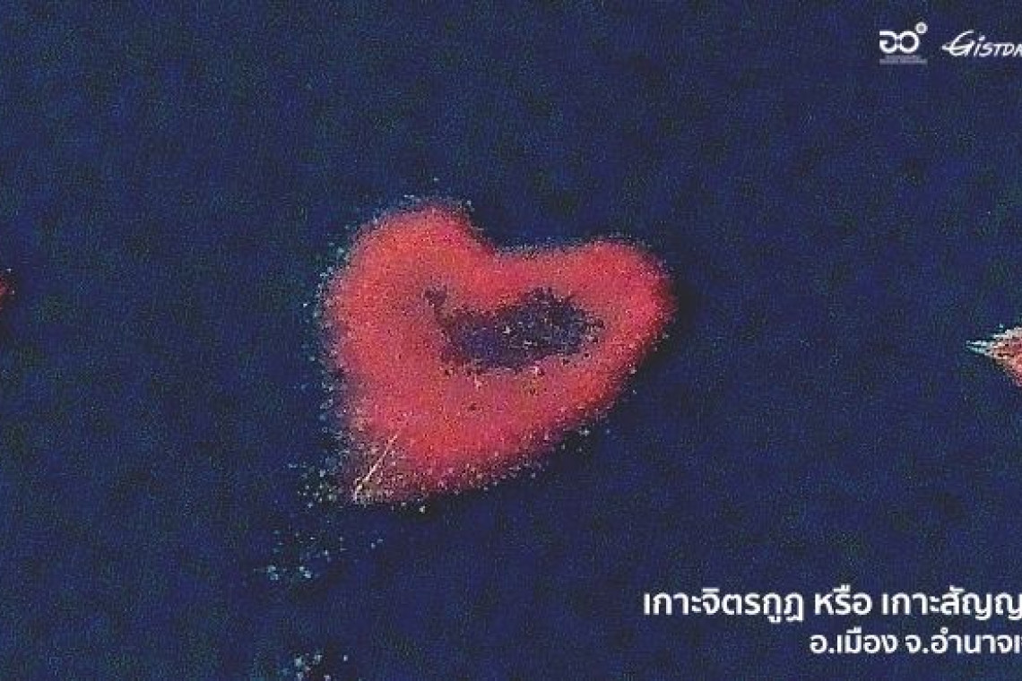 GISTDA โชว์ภาพเกาะสัญญารัก หัวใจแลนด์มาร์กแห่งอำนาจเจริญ ต้อนรับวาเลนไทน์