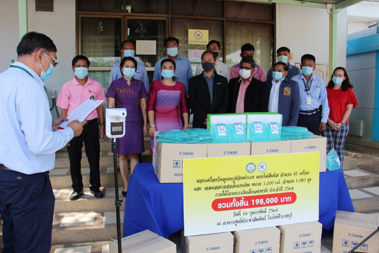 ( 18 ก.พ. 64 ) นายธนะ บุญญสิริกุล กรรมการผู้จัดการ บริษัท ผลิตไฟฟ้าราชบุรี จำกัด กล่าวว่า บริษัท ผลิตไฟฟ้าราชบุรี จำกัด พร้อมด้วยคณะผู้บริหารฯ ได้จัดกิจกรรมมอบเครื่องตรวจวัดอุณหภูมิดิจิตอลแบบสแกนมือหรือ หน้าผากจำนวน 45 เครื่อง พร้อมเจลแอลกอฮอล์ 75 เปอร์เซ็นต์ สำหรับล้างมือขนาดถุง ๆ ละ 1 ลิตร จำนวน 1,080 ถุง รวมเป็นเงิน 198,000 บาท ให้แก่ตัวแทนผู้บริหารโรงเรียนกลุ่มเครือข่าย 27 โรงเรียนรอบพื้นที่โรงไฟฟ้าราชบุรี ประกอบด้วย อ.เมือง อ.ดำเนินสะดวก อ.โพธาราม และ อ.บางแพ เพื่อใช้ในการป้องกันการแพร่ระบาดของเชื้อไวรัสโควิด -19 โดยโรงเรียนขนาดเล็กไม่เกิน 120 คน จะได้รับ 1 เครื่อง และโรงเรียนที่มีนักเรียนมากกว่า 120 คนขึ้นไป จะได้รับ 2 เครื่อง ส่วนเจลแอลกอฮอล์ ได้รับโรงเรียนละ 40 ถุง