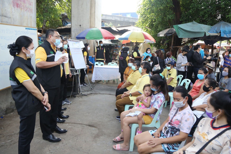 สำหรับชุมชนซอยรัชฎภัณฑ์ (ซอยหมอเหล็ง) เป็นชุมชนแออัดริมคลองมักกะสัน มีพื้นที่ 4 ไร่ ปลูกบนที่ดินของการรถไฟแห่งประเทศไทย และไม่ได้จดทะเบียนชุมชนกับกรุงเทพมหานคร จากการสำรวจพบว่า มีจำนวน 155 ครัวเรือน เป็นบ้านที่มีทะเบียน 50 ครัวเรือน บ้านไม่มีทะเบียน 105 ครัวเรือน โดยมีประชากรอาศัยอยู่ในชุมชน 477 ราย ทั้งนี้ จากการลงพื้นที่สำรวจผู้ได้รับสิทธิ และไม่ได้รับสิทธิโครงการ “เราชนะ” พบว่า กลุ่มที่ 1 เป็นผู้มีสิทธิ จำนวน 98 คน ประกอบด้วย ผู้มีสิทธิคนละครึ่ง จำนวน 63 คน และผู้มีบัตรสวัสดิการแห่งรัฐ จำนวน 35 คน กลุ่มที่ 2 เป็นผู้ไม่มีสิทธิ จำนวน 78 คน ประกอบด้วย เป็นผู้ประกันตนตามมาตรา 33 จำนวน 29 คน ผู้มีเงินฝากเกิน 500,000 บาท จำนวน 4 คน ผู้มีรายได้พึงประเมินเกิน 300,000 บาท จำนวน 1 คน และอายุไม่เกิน 18 ปี จำนวน 44 คน และกลุ่มที่ 3 เป็นผู้ไม่ทราบสิทธิ จำนวน 90 คน ประกอบด้วย ผู้ลงทะเบียนใหม่ จำนวน 67 คน ผู้ที่ไม่มีสมาร์ทโฟน ไม่มีอินเตอร์เน็ต และไม่เคยรับสิทธิ จำนวน 23 คน