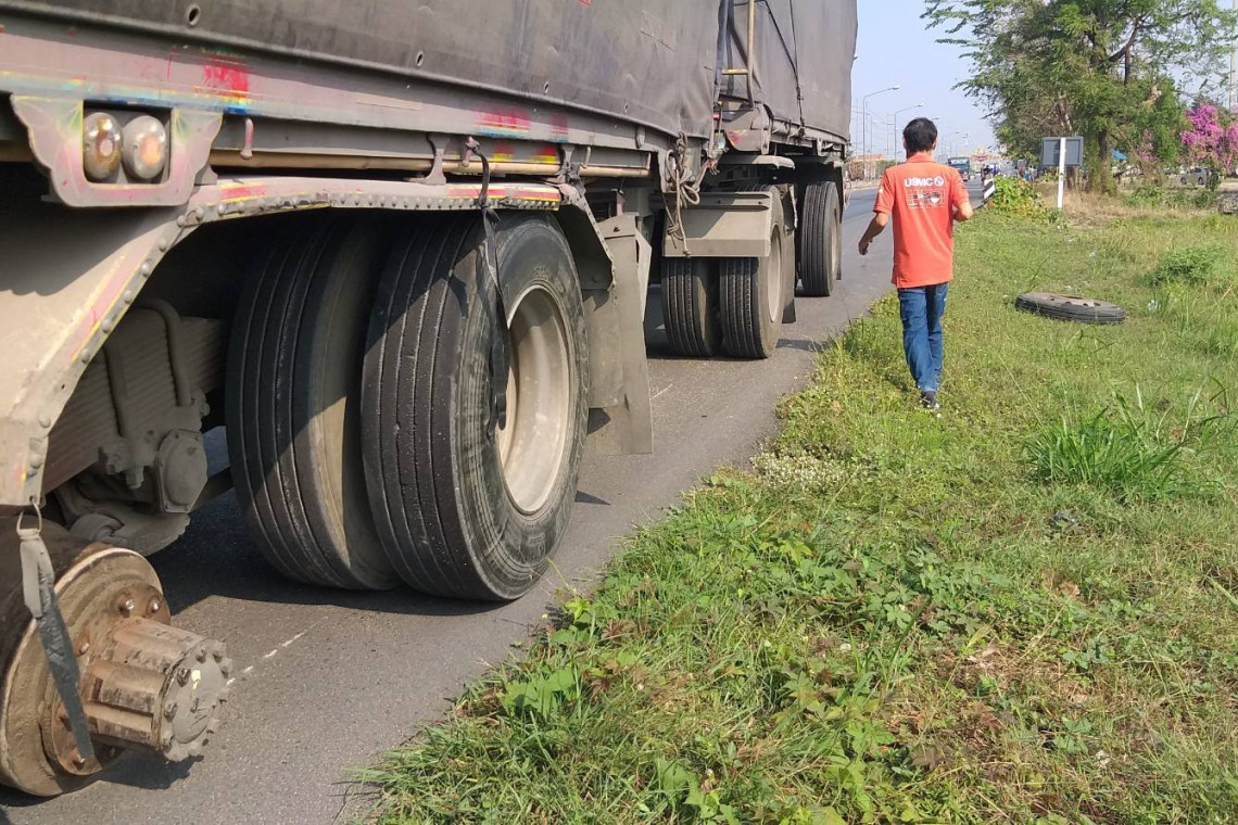 จากการสอบถามนายกิตติพงษ์ พันจบสิงห์ อายุ 38 ปี อยู่บ้านเลขที่ 99/1 หมู่ 5 ต.น้ำทรง อ.พยุหะคีรี จ.นครสวรรค์ ซึ่งเป็นคนขับรถบรรทุกพ่วง 22 ล้อ ที่มายืนรอให้การกับเจ้าหน้าที่ตำรวจว่า ล้อที่วิ่งมาใส่ร้านขายเกลือข้างทางนั้นเป็นล้อรถของตนเองที่หลุดจากตัวรถเพราะน็อตที่ยึดล้อนั้นขาด ซึ่งตอนแรกนั้นไม่ทราบว่าล้อรถด้านนอกนั้นหลุด เพียงแต่ได้ยินเสียงดัง จึงมองกระจกหลังเห็นคนมามุงดูจึงได้จอดรถเพราะขับมาไม่เร็ว แต่พอลงมาดูก็พบว่าล้อรถด้านในอีกล้อหลุดออกมา จึงเชื่อว่าล้อด้านนอกนั้นน่าจะหลุดไปโดนร้านขายของข้างทาง จึงเดินมาดูและเห็นว่ามีคนเจ็บด้วย ก็ตกใจมาก แต่ก็ยินดีที่จะรับผิดชอบทั้งหมด