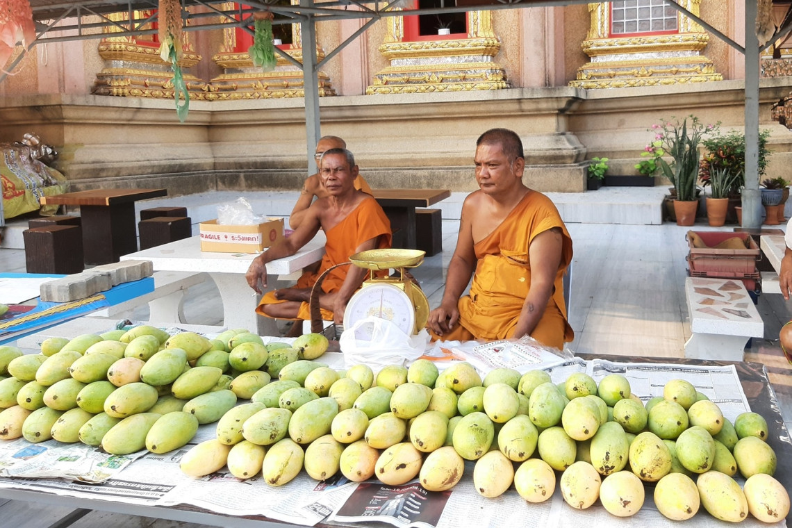 เพจ “วัดบางหญ้าแพรก สมุทรปราการ ปู่เจ้า” ซึ่งตั้งอยู่ในพื้นที่ตำบลบางหญ้าแพรก อำเภอพระประแดง จังหวัดสมุทรปราการ โพสต์ภาพพระสงฆ์กำลังนั่งขายกล้วยหอม, มะพร้าว, มะม่วงน้ำดอกไม้จากสวนที่บางพลี พร้อมระบุข้อความว่า