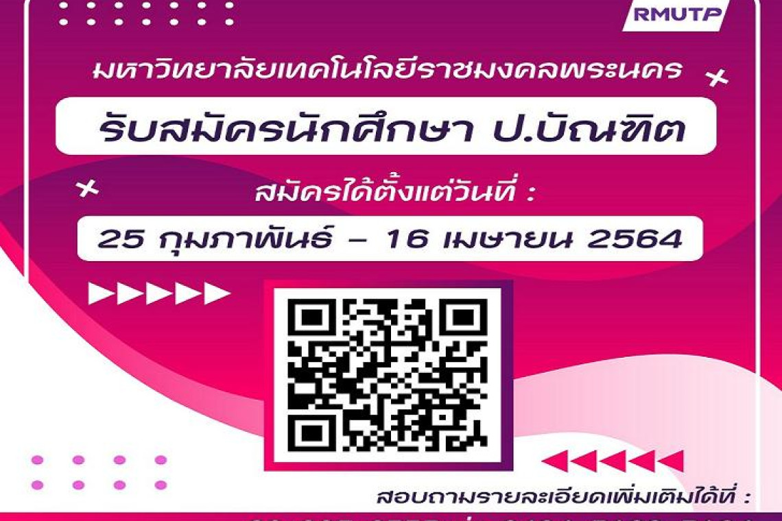 ทั้งนี้ สมัครผ่านระบบออนไลน์ http://reg.rmutp.ac.th/registrar/apphome.asp ตลอด 24 ชั่วโมง ตั้งแต่วันที่ 25 ก.พ. – 16 เม.ย.64 ประกาศรายชื่อผูมีสิทธิ์สอบทางเว็บไซต วันที่ 21 เม.ย.64 และจะจัดการสอบข้อเขียนทางออนไลน์ วิชาวัดแววความเป็นครู (เหตุการณ์สำคัญ บริบททางการศึกษาหลักสูตร การสอน การวัดผล การวิจัย จิตวิทยา ฯลฯ) วันที่ 23 เม.ย.64 และสอบสัมภาษณ์ผ่าน Google Meeting ในวันที่ 29-30 เม.ย.64 ผู้สนใจสอบถามรายละเอียดเพิ่มเติมได้ที่กลุ่มบัณฑิตศึกษา สำนักส่งเสริมวิชาการและงานทะเบียน โทร. 0-2665-3777 ต่อ 6406 หรือคณะครุศาสตร์อุตสาหกรรม ผศ. รุ่งอรุณ พรเจริญ โทร.084-680 -7894 และอาจารย์สุนารี รชตรุจ โทร. 080 -233- 0578