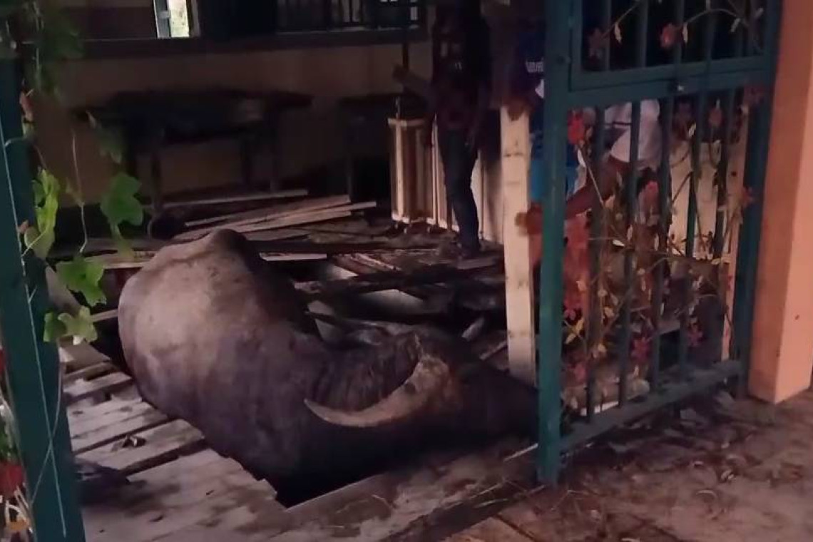 ในที่เกิดเหตุเป็นบริเวณห้องครัวเก่าอยู่ในรีสอร์ทโรงแรมเรือโบราณคุ้มหม่อมไฉไล สภาพมีควายตกตัวใหญ่ตกลงขาทั้ง 4 ขาได้อยู่ในน้ำโชคดีที่ยังมีคานเหล็กประคองตัวไว้ไม่จมทั้งตัวกู้ชีพกู้ภัยจึงได้ช่วยกันนะอุปกรณ์และไม้ช่วยกันงัดขึ้นใช้เวลาประมาณ 20 นาทีจึงช่วยควายเพศเมียตั้งท้องตัวดังกล่าวขึ้นมาได้อย่างทุลักทุเลสุดท้ายก็ขึ้นมาได้อย่างปลอดภัย