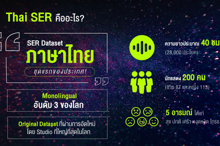 เอไอเอส ร่วมกับสถาบันวิจัยปัญญาประดิษฐ์ประเทศไทย (AIResearch) เผยถึงความสำเร็จของทีมนักวิจัยไทย หลังใช้เวลาเพียง 2 ปี พัฒนาชุดข้อมูล (Dataset) จำแนกอารมณ์จากเสียงพูดภาษาไทย (Speech Emotion Recognition หรือ THAI SER) ได้เป็นครั้งแรกของโลก ด้วยการพัฒนาเทคโนโลยี AI เข้าสู่กระบวนการเรียนรู้ (Deep Learning) มาประยุกต์ใช้ในการประมวลผลสัญญาณเสียง ช่วยให้เข้าใจคุณลักษณะของเสียง ขึ้นแท่นเป็น SER ที่พัฒนาจาก Dataset ที่ใหญ่เป็นอันดับที่ 3 ของโลก โดยอันดับ1 และ2 เป็นภาษาอังกฤษ ที่พัฒนามาจากชุด Dataset เสียงจาก Podcast และ YouTube ที่จะสามารถนำไปประยุกต์ใช้เพื่อเพิ่มประสิทธิภาพด้านงานบริการที่ตอบโจทย์ความต้องการของลูกค้าได้มากยิ่งขึ้น ทั้งนี้ ผู้ที่สนใจ สามารถศึกษารายละเอียดเพิ่มเติม พร้อมดาวน์โหลดชุดข้อมูล THAI SER ไปพัฒนาต่อยอดได้ฟรีแล้ว ทางเว็บไซต์ https://airesearch.in.th ตั้งแต่วันนี้ เป็นต้นไป