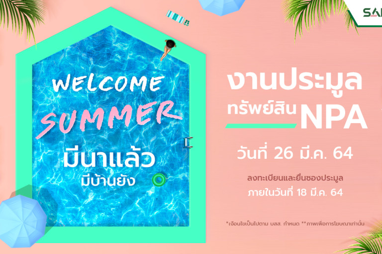 บริษัท บริหารสินทรัพย์สุขุมวิท จำกัด (บสส.) หรือ SAM เปิดเผยว่า SAM คัดทรัพย์สินรอการขาย (NPA) ทั้งบ้านเดี่ยว ทาวน์เฮ้าส์ ห้องชุดพักอาศัย รวมถึงทรัพย์เพื่อการลงทุนอื่น ๆ ในทำเลสวยทั่วประเทศ จำนวน 181 รายการ มูลค่ารวม 155.65 ล้านบาท ออกประมูล ในวันศุกร์ที่ 26 มีนาคม 2564 ณ สำนักงานใหญ่ของ SAM อาคารซันทาวเวอร์ส บี ชั้น 24 ถ.วิภาวดีรังสิต กรุงเทพฯ โดยมีตัวอย่างทรัพย์เด่นที่น่าสนใจในพื้นที่กรุงเทพฯ และปริมณฑล อาทิ อาคารพาณิชย์ 3 ชั้น 2 คูหาติดกัน เนื้อที่ประมาณ 68 ตร.ว. ติด ถ.พระราม 2 เขตบางขุนเทียน กรุงเทพฯ ราคาเริ่มต้น 8.05 ล้านบาท ทาวน์เฮ้าส์ 3 ห้องนอน 2 ห้องน้ำ เนื้อที่ประมาณ 18 ตร.ว. ย่านประชาอุทิศ ใกล้ ถ.เลียบวงแหวนกาญจนาภิเษก ทุ่งครุ กรุงเทพฯ ราคาเริ่มต้น 2.25 ล้านบาท