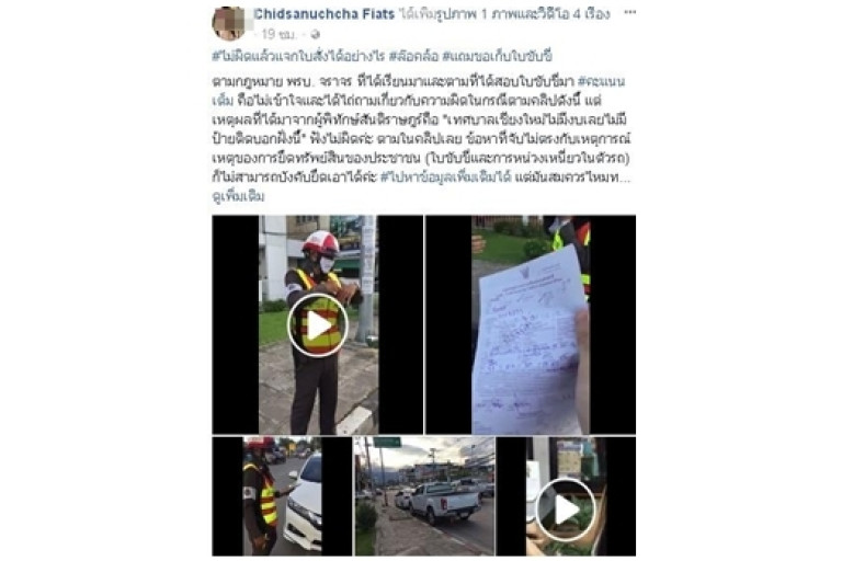 จากกรณีที่ผู้ใช้เฟสบุ๊ค Chidsanuchcha Fiats ได้โพสต์เรื่องราวว่าตนถูกตำรวจจราจรเขียนใบสั่งทั้งที่จอดข้างแถบขาวดำ ไม่มีป้ายห้ามใดๆ แต่ตำรวจจราจรเขียนใบสั่งให้ว่าเธอฝ่าฝืนจอดรถในที่ห้ามจอด โดยอ้างอิงจากป้ายเตือนที่ติดอยู่ฝั่งตรงข้าม หนำซ้ำยังไม่มีการเขียนใบสั่งหรือให้การอธิบายใดๆ กับรถที่จอดในโซนขาวแดงแม้แต่คันเดียว ต่อมาเป็นที่ถกเถียงกันอย่างมากในโลกออนไลน์ บางคนก็บอกว่าแม้จะไม่มีป้ายห้าม แต่ดูจากสภาพแวดล้อมอีกครั้งว่าเหมาะสมกับการจอดรถได้หรือไม่ บางคนก็อ้างว่าจอดได้ เพราะไม่ใช่ที่ห้ามจอดแต่อย่างใด
