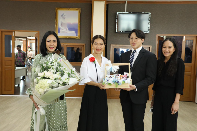 สุดถนอม กรรณสูต กรรมการ บริษัท อุตสาหกรรมนมไทย จำกัด นมตรามะลิ พร้อมคณะผู้บริหาร เข้าแสดงความยินดีกับ นันทิดา แก้วบัวสาย นายก อบจ.หญิงท่านแรก ของจังหวัดสมุทรปราการ ที่ อบจ.สมุทรปราการ