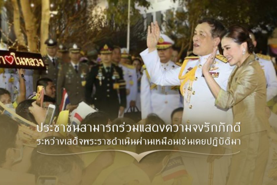 ทั้งนี้ ประชาชนยังสามารถร่วมแสดงความจงรักภักดีระหว่างเสด็จพระราชดำเนินผ่านเหมือนเช่นที่เคยปฏิบัติมา