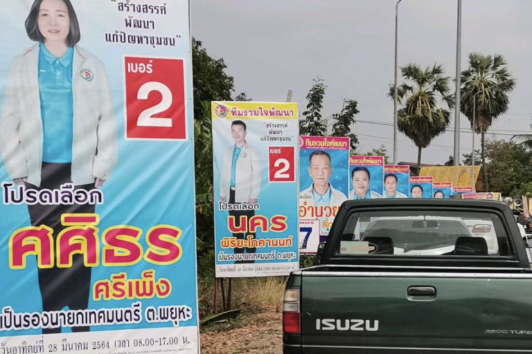 นายศรีสุวรรณ จรรยา เลขาธิการสมาคมองค์การพิทักษ์รัฐธรรมนูญไทย กล่าวว่า ในพื้นที่อำเภอพยุหะคีรี จังหวัดนครสวรรค์ พบ ป้ายผู้สมัครรับเลือกตั้งนายกเทศมนตรี ได้จัดทำและติดตั้งป้ายหาเสียง โดยรูปภาพในป้ายหาเสียงมิใช่เป็นรูปของผู้สมัคร หากแต่เป็นบุคคลอื่นที่มิได้เป็นผู้สมัครรับเลือกตั้ง ซึ่งอาจเข้าข่ายหลอกลวงหรือจูงใจให้เข้าใจผิด ในคะแนนนิยมของผู้สมัครได้