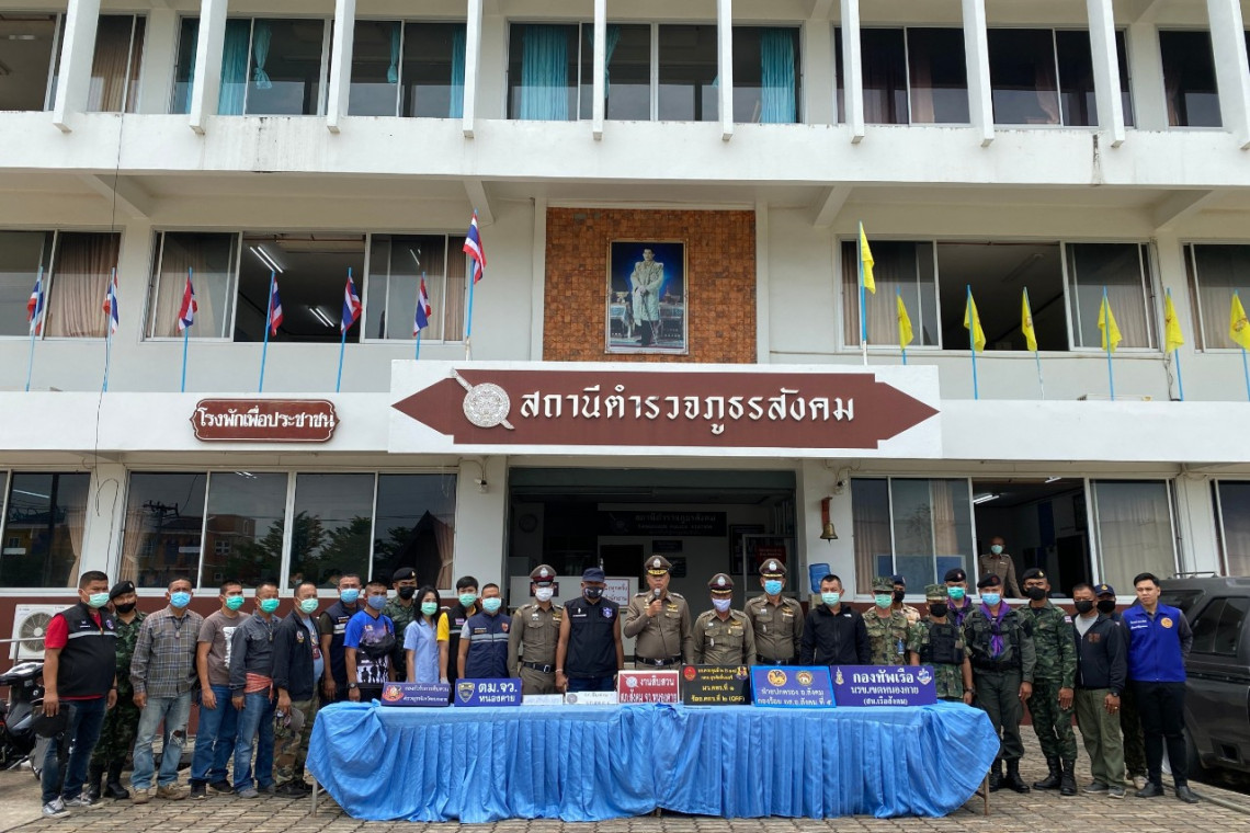 เมื่อเวลา 11.00 น.วันนี้ (25 มีนาคม 64) ที่หน้า สภ.สังคม จังหวัดหนองคาย พล.ต.ต.กิตติศักดิ์ จำรัสประเสริฐ ผบก.ภ.จังหวัดหนองคาย , พ.ต.อ.ณรงค์ ตันดี ผกก.สภ.สังคม , พ.ต.อ.สุรกิจ ค้วนเครือ ผู้กำกับการสืบสวนกองกำกับการสืบสวนตำรวจภูธรจังหวัดหนองคาย ,พ.ต.ท.คพัชร คงสูงเนิน สว.กก.สืบสวน 1 บก.สส.ภ.4 , พ.ต.ท.ภีรภัทร์ ปรมพุฒิ รอง ผกก.ตม.จังหวัดหนองคาย พร้อมเจ้าหน้าที่ตำรวจ ทหาร กกล.สุรศักดิ์มนตรี ,เจ้าหน้าที่ นรข.เขตหนองคาย ,เจ้าหน้าที่ ฉก.ตชด.24 และฝ่ายปกครอง ได้ร่วมกันแถลงข่าวการจับกุมขบวนการลักลอบนำพาคนต่างด้าวเข้ามาในราชอาณาจักรโดยผิดกฎหมาย ซึ่งเจ้าหน้าที่สามารถจับกุมผู้ต้องหาได้ทั้งหมด 10 คน แยกเป็นคนไทย 3 คน คือนายธวัชชัย หรือทัด นาเจริญ อายุ 28 ปี อยู่บ้านเลขที่ 52 หมู่ 9 ต.เซิม อ.โพนพิสัย จังหวัดหนองคาย และนายรามิน หรือมิน ไชยา อายุ 25 ปี อยู่บ้านเลขที่ 87 หมู่ บ้านนามน ต.เซิม อ.โพนพิสัย จ.หนองคาย , นายถิรคุณ หรือแต้ บุญอภัย อายุ 49 ปี อยู่บ้านเลขที่ 81 หมู่ 1 ต.ผาตั้ง อ.สังคม จ.หนองคาย และผู้ต้องหาชายชาวจีน จำนวน 8 คน ที่ลักลอบเข้าราชอาณาจักรโดยผิดกฎหมาย ประกอบด้วย นายเฉิน ฮ้าน ซัน อายุ 25 ปี , นายเติ้ง ฟูน เซิน อายุ 24 ปี , นายเจิน เจีย หย่ง อายุ 24 ปี , นายเหวิน เฮ้า อายุ 29 ปี , นายเฉิน กุ้ย ปิน อายุ 26 ปี , นายหลี จิน ซาน อายุ 26 ปี , นายพาน จิน เท็น อายุ 28 ปี , นายตั้ง เหยิน กวง อายุ 23 ปี ที่เจ้าหน้าที่ร่วมกันจับกุมได้ในบริเวณหมู่ที่ 1 ต.ผาตั้ง อ.สังคม จ.หนองคาย