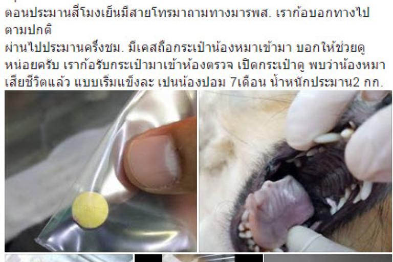 จากกรณีที่มีผู้ใช้เฟชบุ๊คชื่อว่า Jakkarin Ringngoen ได้นำเรื่องราวไปโพสไว้ในโลกโซเชียลเปิดเผยพฤติกรรมของชายคนหนึ่งที่น่าจะเป็นนักศึกษาแพทย์ ได้นำสุนัขพันธุ์ปอมเมอเรเนียนมารักษาที่โรงพยาบาลสัตว์แห่งหนึ่งในโคราช ซึ่งผลปรากฏว่าสุนัขตาย ซึ่งเจ้าของยืนยันว่าสุนัขของเขาตายไม่รู้สาเหตุระหว่างเดินทางมากับบริษัทขนส่งแห่งหนึ่ง ขณะที่บริษัทขนส่งฯ ต้องการให้โรงพยาบาลสัตว์ผ่าพิสูจน์หาสาเหตุการตาย ซึ่งเมื่อทีมสัตวแพทย์ผ่าสุนัขผลปรากฏว่าในกระเพาะอาหารเจอยาลดความดันที่ใช้รักษาคน แต่เจ้าของยืนยันว่าป้อนวิตามินบำรุง เมื่อสัตวแพทย์ถามหาขวดยาวิตามินเจ้าของกลับกล่าวว่า ทิ้งไปแล้ว และให้ช่วยระบุการตายว่าไม่พบสาเหตุแต่ทีมสัตวแพทย์ปฏิเสธ ต่อมา เจ้าของยืนยันว่าโรงพยาบาลสัตว์แห่งหนึ่งจ่ายยามา และเรียกร้องให้สัตวแพทย์ออกใบชันสูตรการตายของสุนัขที่ไม่ตรงความจริง ทีมสัตวแพทย์ไม่สบายใจจึงขอไปลงบันทึกประจำวันที่สถานีตำรวจ จากกรณีนี้ทีมไขประเด็นจึงนำข้อมูลมาเพื่อให้ทราบถึงข้อเท็จจริงกัน โดยสัตวแพทย์หญิงอนงค์นาถ เปิดเผย ได้มีลูกค้ารายหนึ่งโทรศัพท์นัดว่าจะพาสุนัขมารักษา หลังจากนั้นประมาณ 30 นาที ลูกค้าก็มาถึงโรงพยาบาลสัตว์ฯ เมื่อลงมาจากรถก็หิ้วประเป๋าที่มีซากสุนัขที่ตายแล้วมาให้ตรวจดู ตนจึงแจ้งให้เจ้าของทราบว่าสุนัขตายมาแล้ว ก่อนที่จะเห็นว่าเจ้าของสุนัขไปพูดคุยกับคนขับรถบริษัทขนส่งสัตว์เลี้ยง ให้รับผิดชอบต่อการสูญเสียสุนัขครั้งนี้ ซึ่งคนขับรถก็ยืนยันว่าก่อนหน้านั้นเพียงครึ่งชั่วโมง ก็ยังเห็นว่าสุนัขแข็งแรงดี ลงไปวิ่งเล่นที่ปั๊มน้ำมันอยู่เลย และตัวเขาก็ไม่ได้แตะต้องตัวสุนัขเลย จึงแปลกใจว่าเหตุใดสุนัขถึงตายได้เร็วขนาดนี้และเมื่อผ่าซากสุนัขตรวจสอบดูจึงปรากฏเห็นเม็ดยาจำนวนมากอยู่ในกระเพาะของสุนัข ตามคลิปที่โพสลงในโซเชียล พร้อมกันนั้นก็เกิดความสงสัย เพราะตอนเจ้าของนำสุนัขมา ตนก็เห็นเม็ดยาชนิดพบว่ามียาอยู่ภายในกระเพาะเป็นจำนวนมาก ซึ่งสงสัยว่าสุนัขจะถูกวางยาโดยเจ้าของสุนัข เพื่อเรียกค่าประกันกับบริษัทขนส่งสัตว์เลี้ยง ดังนั้นจึงขอแจ้งเตือนภัยสังคมในลักษณะการฆ่าสุนัขเพื่อเอาเงินประกันไปยังโรงพยาบาลสัตว์อีกหลายแห่งว่าอาจมีเคสลักษณะแบบนี้ และมีความเป็นไปได้ว่าเจ้าของสุนัขน่าจะเป็นคนเดียวกัน