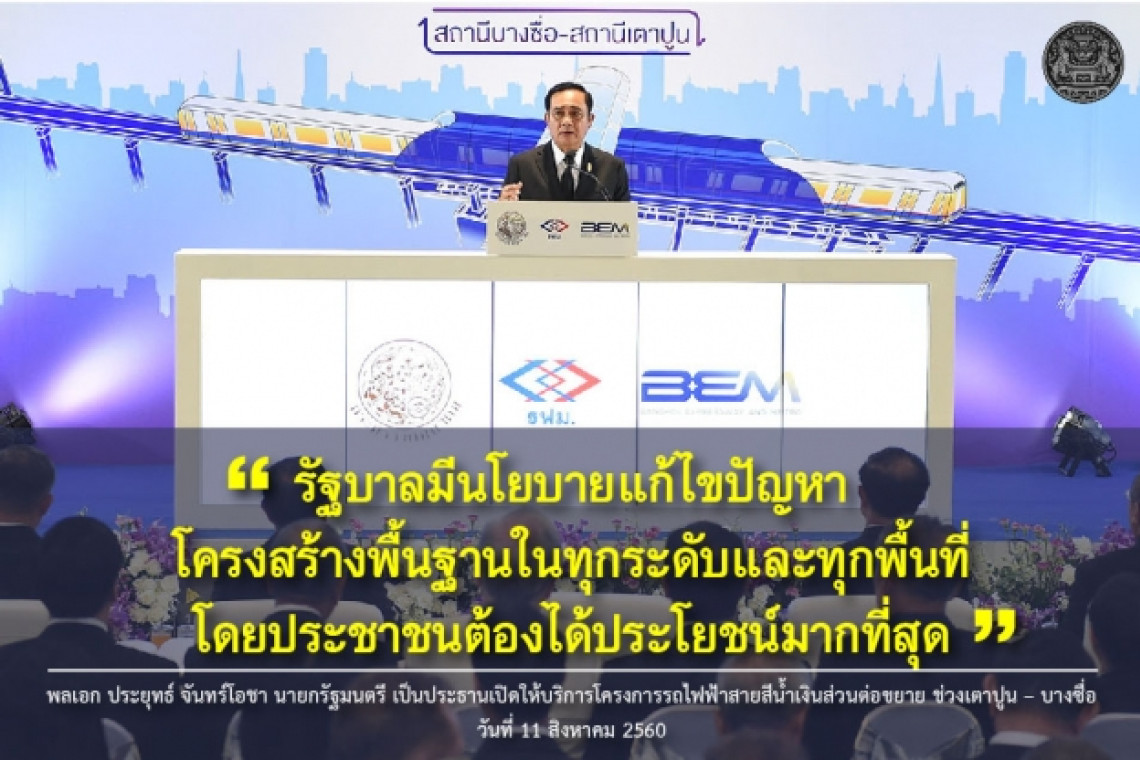 ปัญหาการจราจรคับคั่งรถติดในช่วงเวลาเร่งด่วนล้วนเป็นปัญหาของเมืองใหญ่หรือมหานครทั่วโลก รวมถึงกรุงเทพมหานคร เมืองหลวงของประเทศไทย ด้วยจำนวนประชากรในกรุงเทพมหานครและปริมณฑลที่มีกว่า 11 ล้านคน และมีแนวโน้มเพิ่มสูงขึ้นในทุกๆ ปี ส่งผลให้ชีวิตความเป็นอยู่อาศัย และการเดินทางสัญจรของคนกรุงเกิดความแออัด ประเด็นสำคัญในการแก้ไขปัญหาจราจรในพื้นที่กรุงเทพฯ และปริมณฑลในช่วงหลายปีที่ผ่านมาคือ แผนงานพัฒนา “โครงการรถไฟฟ้าในเมือง” ล่าช้ากว่ากำหนด โดยก่อนหน้าที่รัฐบาล พลเอกประยุทธ์ จันทร์โอชา นายกรัฐมนตรี จะเข้ามาบริหารประเทศ รถไฟฟ้าในเมืองไทยเพิ่งเปิดใช้งานได้แค่ 2 สายเท่านั้น คือ รถไฟฟ้าเฉลิมพระเกียรติ 6 รอบพระชนมพรรษา สาย 1 หรือ “รถไฟฟ้าบีทีเอส” และรถไฟฟ้ามหานคร สายเฉลิมรัชมงคล หรือ “รถไฟฟ้าเอ็มอาร์ที”
