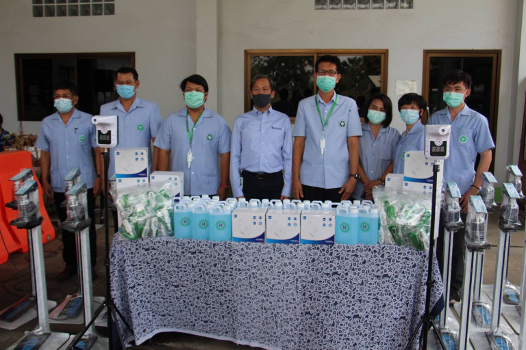 โรงไฟฟ้าราชบุรี มอบอุปกรณ์เครื่องตรวจวัดอุณหภูมิชนิดไม่สัมผัส เครื่องกดเจลล้างมือแบบเท้าเหยียบ แอลกอฮอล์น้ำ 99.99 % ขวดสเปร์ยแอลกอฮอล์แบบพกพา สำหรับป้องกันการแพร่ระบาด COVID - 19 แก่ 16 รพ.สต.พื้นที่รอบโรงไฟฟ้าราชบุรี