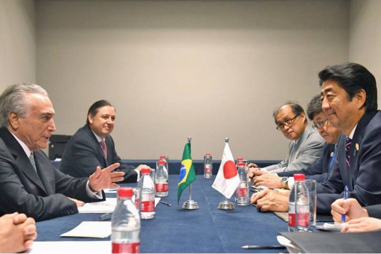 นายกรัฐมนตรีชินโซ อาเบะ ของญี่ปุ่น และนายมิเชล เตแมร์ ประธานาธิบดีคนใหม่ของบราซิล ใช้โอกาสในการเดินทางเข้าร่วมประชุมจี 20 ที่นครหางโจว ประเทศจีน ในการหารือร่วมกันเป็นครั้งแรกของผู้นำทั้งสองประเทศในรอบเกือบ 2 ปี ทั้งนี้ ทั้งคู่ได้มีการพูดคุยถึงประเด็นความสัมพันธ์ และการเป็นเจ้าภาพโอลิมปิกริโอ 2016 ที่ผ่านมาของบราซิล ซึ่งจะส่งมอบให้กรุงโตเกียวรับผิดชอบเป็นเจ้าภาพในอีก 4 ปีข้างหน้า ส่วนวาระอื่นๆ นั้น นายอาเบะ จะหารือกับนายเตแมร์ในเรื่องการปฏิรูปสมัชชาความมั่นคงแห่งสหประชาชาติ หรือยูเอ็นเอสซี และปัญหาเศรษฐกิจตกต่ำในบราซิล