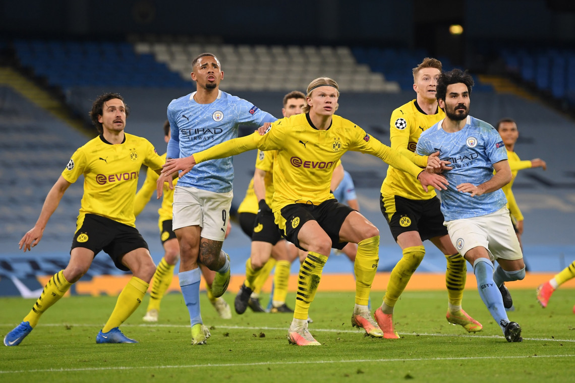 ที่สนาม เอติฮัด สเตเดี้ยม ประเทศอังกฤษ ในการแข่งขันฟุตบอล ยูฟ่า แชมเปี้ยนส์ ลีก ฤดูกาล 2020-2021 รอบก่อนรองชนะเลิศ นัดแรก คืนวันที่ 6 เม.ย.64 ระหว่างทีม "แมนเชสเตอร์ ซิตี้" พบกับทีม "ดอร์ทมุนด์" เริ่มเกมการแข่งขันในครึ่งเวลาแรกในนาทีที่ 7 ดอร์ทมุนด์ ได้ทักทายก่อนเมื่่อ จู๊ด เบลลิงแฮม ได้บอลในเขตโทษก่อนโยกหนี ไคล์ วอล์คเกอร์ แล้วยิงด้วยซ้ายมุมแคบ ทว่ายังไม่ผ่านมือ เอแดร์ซอน นายทวารเจ้าถิ่น กระทั่งในนาทีที่ 19 แมนฯ ซิตี้ ออกนำ 1-0 จากจังหวะที่ เอ็มเร่ ชาน เสียบอลกลางสนามแล้วโดนซิตี้โต้กลับทันที ฟิล โฟเด้น ปาดบอลจากซ้ายเลยไปเสาไกล ริยาด มาห์เรซ เก็บบอลทางฝั่งขวาก่อนปาดให้ เควิน เดอ บรอยน์ วิ่งมายิงด้วยขวาระยะ 6 หลาตุงตาข่าย ผ่านมาครึ่งชั่วโมง ผู้ตัดสินเป่าให้จุดโทษ แมนฯ ซิตี้ ในจังหวะที่ เอ็มเร่ ชาน ไปทำฟาวล์ โรดรี้ พร้อมแจกเหลืองให้ ชาน ก่อนเช็กวีเออาร์แล้วพบว่าจังหวะดีดส้นเคลียร์บอลของ ชาน ไม่ได้ฟาวล์ชัดเจนจึงยกเลิกจุดโทษที่แจกในตอนแรก นาที 37 ดอร์ทมุนด์ ส่งบอลตุงตาข่ายได้จาก จู๊ด เบลลิ่งแฮม วิ่งไล่บอลแล้วจิ้มบอลที่ เอร์แดร์ซอน ออกมาเล่นนอกเขตโทษได้ ก่อนยิงโล่งๆ ทว่าผู้ตัดสินเป่าว่า เบลลิงแฮม ทำฟาวล์นายทวารเรือใบทั้งที่เป็นฝ่ายจิ้มบอลได้ก่อน ทีมเยือนโชคร้ายสุดๆ ที่ไม่ได้ประตูตีเสมอ ทำให้จบครึ่งแรกเป็น แมนฯ ซิตี้ นำ ดอร์ทมุนด์ 1-0