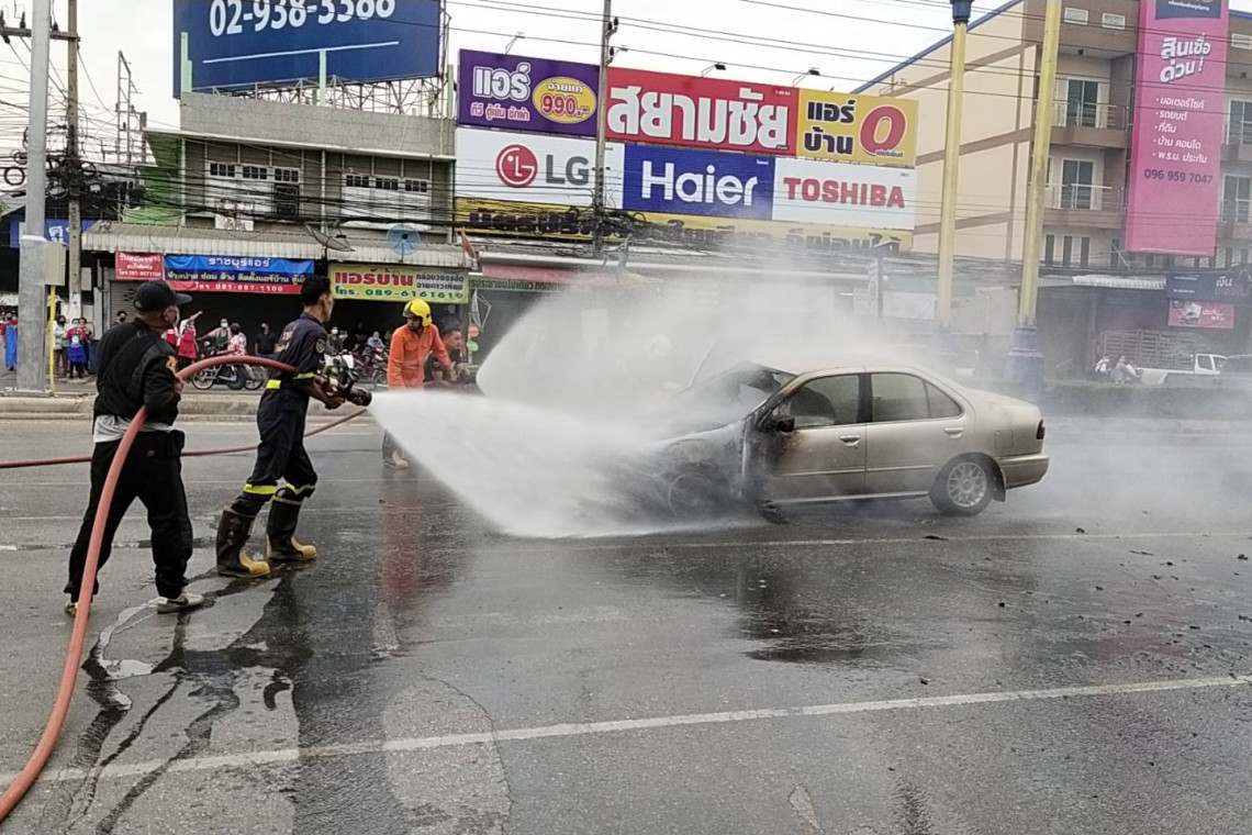 เมื่อเวลา 06.45 น.วันที่ 9 เม.ย. 2564 เจ้าหน้าที่ตำรวจ สภงเมืองราชบุรี ได้รับแจ้งเกิดเหตุเพลิงไหม้รถยนต์ บริเวณ 4 แยกไฟแดง ทางเข้าตลาดศรีเมือง ขาเข้าตลาดราชบุรี ถนนไกรเพชร เขตเทศบาลเมืองราชบุรี จึงแจ้งรถดับเพลิงเทศบาลเมืองราชบุรี รุดไปยังที่เกิดเหตุ 2 คัน พบเพลิงกำลังรุกไหม้ด้านหน้าบริเวณห้องเครื่องรถยนต์เก๋ง ยี่ห้อนิสสัน สีบอร์นทอง ทะเบียน ภภ-2438 กทม. เจ้าหน้าที่จึงใช้น้ำฉีดสกัดและสามารถควบคุมเพลิงไว้ได้ จากการตรวจสอบพบรถยนต์เก๋งคันดังกล่าว สภาพถูกไฟไหม้ตั้งแต่บริเวณเครื่องยนต์ถึงด้านในเสียหายเกือบทั้งหมด จากการสอบถามนายสัมพันธ์ เทพพิทักษ์ อายุ 73 ปี เลขที่ 429/52 ถนนศรีสุริยวงศ์ ต.หน้าเมือง อ.เมือง จ.ราชบุรี เป็นผู้ขับรถยนต์คันที่เกิดเหตุ ทราบว่า มีอาชีพขายอาหารทะเลที่ตลาดเทศบาลเมืองราชบุรี ก่อนเกิดเหตุได้ขับรถมาด้วยกัน 3 คน พอมาถึงแยกไฟแดงที่เกิดเหตุ รถจอดติดไฟแดง ขณะนั้นรถมีอาการกระตุกและดับ ตนจึงบิดกุญแจเพื่อสตาร์ท บิดครั้งแรกไม่ติด พอบิดครั้งที่ 2 เกิดเสียงพรึบและไฟก็รุกทันที ตนและผู้ที่อยู่ในรถรีบเปิดประตูหนีออกมาได้ทัน และมีประชาชนแจ้งเจ้าหน้าที่ดับเพลิงมาช่วยดับไฟทันที และจากการตรวจสอบรถยนต์เก๋งคันนี้ไม่ได้ติดแก็ส เติมน้ำมันเป็นเชื้อเพลิงเท่านั้น ซึ่งเจ้าหน้าที่ตำรวจจะได้ตรวจสอบหาสาเหตุการเกิดเพลิงไหม้ต่อไป