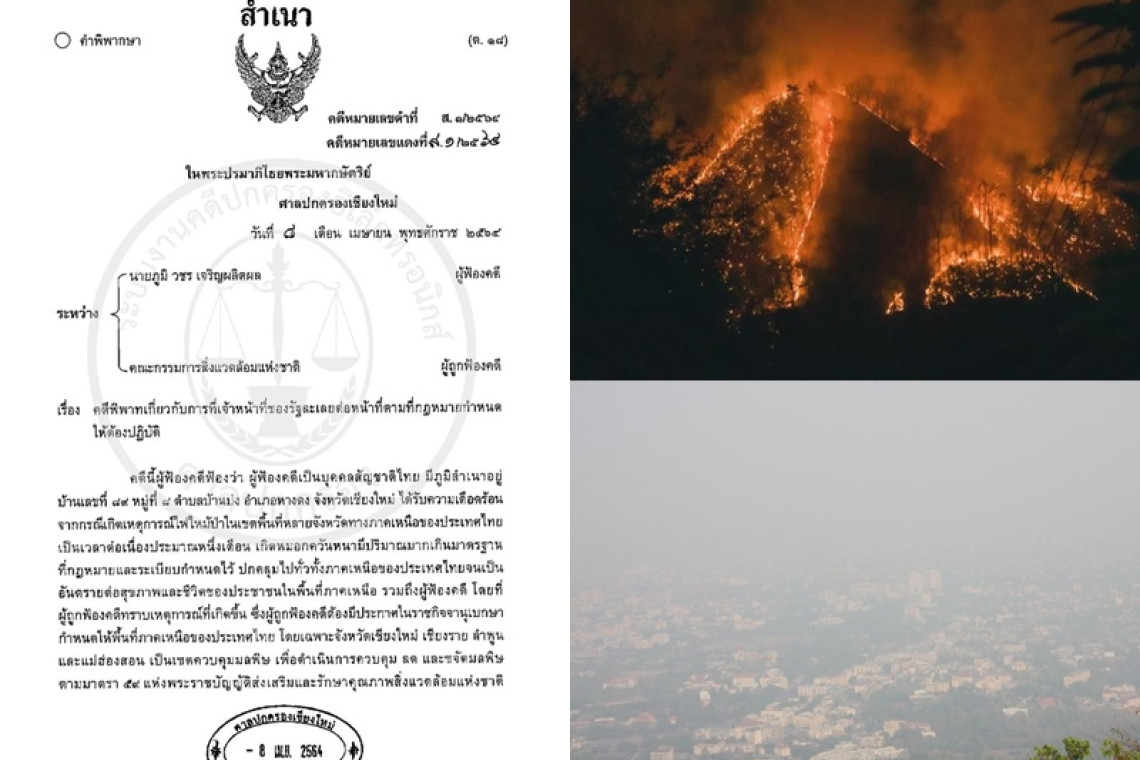 เคสชาวบ้านเดือดร้อนทนสูดฝุ่นพิษ จากเหตุไฟป่าที่กระจายไปหลายจังหวัด โดยศาลปกครองเชียงใหม่มีคำพิพากษาให้คณะกรรมการสิ่งแวดล้อมแห่งชาติ ต้องประกาศให้พื้นที่ 4 จว. เชียงใหม่ เชียงราย แม่ฮ่องสอน ลำพูน เป็นเขตควบคุมมลพิษ ภายใน 30 วัน เมื่อวันที่ 8 เม.ย.64 ศาลปกครองเชียงใหม่ ได้มีคำพิพากษา คดีหมายเลขดำที่ ส.1/2564 คดีหมายเลขแดงที่ ส.1/2564 วันที่ 8 เมษายน 2564 คดีพิพาทเกี่ยวกับการที่เจ้าหน้าที่ของรัฐละเลยต่อหน้าที่ตามกำหนดให้ต้องปฏิบัติ โดยผู้ฟ้องคดีคือ นายภูมิ วชร เจริญผลิตผล ประชาชนในจังหวัดเชียงใหม่ ผู้ถูกฟ้องคดีคือ คณะกรรมการสิ่งแวดล้อมแห่งชาติ คดีนี้ผู้ฟ้องคดีซึ่งมีภูมิลำเนาอยู่ต.บ้านปง อ.หางดง จ.เชียงใหม่ ได้รับความเดือดร้อนจากกรณีเกิดเหตุไฟไหม้ป่าในเขตพื้นที่หลายจังหวัดทางภาคเหนือของไทยเป็นเวลาต่อเนื่องประมาณ 1 เดือน เกิดหมอกควันหนามีปริมาณมากเกินมาตรฐานที่กำหนดไว้ ปกคลุมไปทั่วทั้งภาคเหนือของไทยจนเป็นอันตรายต่อสุขภาพและชีวิตของประชาชนในพื้นที่ภาคเหนือ รวมถึงผู้ฟ้องคดี โดยที่ผู้ถูกฟ้องคดีทราบเหตุการณ์ที่เกิดขึ้น ทั้งนี้ ศาลได้พิพากษาให้ผู้ถูกฟ้องคดีใช้อำนาจตามมาตรา 59 แห่งพระราชบัญญัติส่งเสริมและรักษาคุณภาพสิ่งแวดล้อมแห่งชาติ พ.ศ.2535 ประกาศในราชกิจจานุเบกษา กำหนดให้เขตพื้นที่จ.เชียงใหม่ เชียงราย ลำพูน และแม่ฮ่องสอน เป็นเขตควบคุมมลพิษเพื่อดำเนินการควบคุม ลดและขจัดมลพิษ ทั้งนี้ให้ดำเนินการประกาศภายใน 30 วัน นับแต่วันที่คำพิพากษาถึงที่สุด คำขออื่นนอกจากนี้ให้ยก ขณะที่เพจการแรงงานและสิทธิมนุษยชน โพสต์ผ่านเฟซบุ๊กระบุ ด่วนคำพิพากษาศาลปกครองเชียงใหม่ คดีหมายเลขดำที่ ส.1/2564 คดีหมายเลขแดงที่ ส.1/2564 วันที่ 8 เมษายน 2564 #คดีน่าสนใจศึกษามากๆ #คดีเจ้าหน้าที่รัฐละเลยต่อหน้าที่ฯ กรณีนายภูมิ วชร เจริญผลิตผล ราษฎรอำเภอหางดง จังหวัดเชียงใหม่ ฟ้องคณะกรรมการสิ่งแวดล้อมแห่งชาติ ให้ดำเนินการประกาศกำหนดให้ท้องที่จังหวัดเชียงใหม่ เชียงราย แม่ฮ่องสอน และ ลำพูน เป็นเขตควบคุมมลพิษ ในราชกิจจานุเบกษา ตามมาตรา 59 แห่ง พ.ร.บ. ส่งเสริมและรักษาคุณภาพสิ่งแวดล้อม พ.ศ. 2535 ภายใน 30 วัน นับแต่วันที่คำพิพากษาถึงที่สุด ด้านเพจบัณรส บัวคลี่ นักคิดนักเขียนคอลัมนิสต์คนดัง โพสต์ผ่านเฟซบุ๊กระบุ ด่วนๆ เพิ่งตัดสินเมื่อวาน เคสประวัติศาสตร์ ปชช. ชาวหางดง ฟ้องรัฐละเลยไม่แก้ปัญหามลพิษฝุ่น pm2.5 และรัฐแพ้คดี ล่าสุด ศาลปกครองเชียงใหม่ สั่งให้ คณะกก.สวล.แห่งชาติ ประกาศเขตควบคุมมลพิษ . ใน 4 จว.ฝุ่นควันเกินมาตรฐานรุนแรง ชม. มส. ลพ. ชร. ภายใน 30 วัน เพื่อให้เก