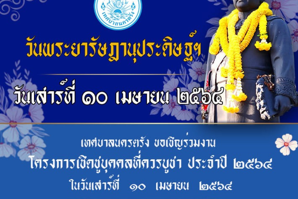 เทศบาลนครตรัง จัดโครงการเชิดชูบุคคลที่ควรบูชา ประจำปี 2564เพื่อเชิดชูเกียรติและรำลึกถึงคุณงามความดีของพระยารัษฎานุประดิษฐ์มหิศรภักดี