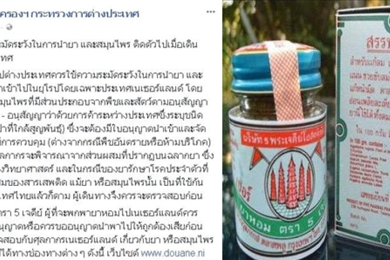 จากกรณีที่เฟซบุ๊กกองคุ้มครองและดูแลผลประโยชน์คนไทยในต่างประเทศ กระทรวงการต่างประเทศ เผยแพร่ข้อมูลว่า ปัจจุบันเจ้าหน้าที่ศุลกากรเนเธอร์แลนด์ มีความเข้มงวดในการปฏิบัติตามกฎระเบียบที่เกี่ยวข้องกับการนำเข้าของเนเธอร์แลนด์และของสหภาพยุโรป