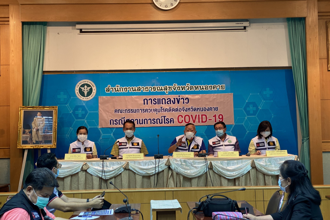 จังหวัดหนองคาย แถลงข่าว พบผู้ป่วยยืนยันติดเชื้อโควิด-19 ระลอกใหม่ เพิ่มอีกจำนวน 4 ราย เป็นชาย ประกอบธุรกิจส่วนตัว และเป็นนักศึกษาชาย-หญิง อยู่ในเขตอำเภอเมือง 3 ราย และในเขตอำเภอโพนพิสัย 1 ราย มีประวัติไปพื้นที่เสี่ยง และสัมผัสเสี่ยงกับผู้ที่อยู่ในพื้นที่เสี่ยง เมื่อช่วงบ่ายวันนี้ (14 เม.ย. 64) ที่ห้องประชุมสวัสดิ์ สัมพาหะ สำนักงานสาธารณสุขจังหวัดหนองคาย นายประเสริฐ ลือชาธนานนท์ ผู้ว่าราชการจังหวัดหนองคาย , นพ.ชัชวาลย์ ฤทธิ์ฐิติ นายแพทย์สาธารณสุขจังหวัดหนองคาย , นายณัฐวัสส์ วิริยานภาภรณ์ รองผู้ว่าราชการจังหวัดหนองคาย , นางสาวสิริมา วัฒโน รองผู้ว่าราชการจังหวัดหนองคาย และนางรณิดา เหลืองฐิติสกุล รองผู้ว่าราชการจังหวัดหนองคาย ได้ร่วมกันแถลงข่าว สถานการณ์การระบาดของโรคโควิด-19 ระลอกเดือนเมษายน 2564 ในพื้นที่จังหวัดหนองคาย นายประเสริฐ ลือชาธนานนท์ ผู้ว่าราชการจังหวัดหนองคาย ได้แถลงรายละเอียดกรณีพบผู้ป่วยยืนยันติดเชื้อโควิด-19 ที่มีการแพร่ระบาดระลอกใหม่ ในพื้นที่จังหวัดหนองคาย ในการระบาดระลอกใหม่ช่วงเดือนเมษายน 2564 ที่ในจังหวัดหนองคาย พบผู้ป่วยยืนยันติดเชื้อโควิด-19 รายใหม่เพิ่มอีก 4 ราย อยู่ในเขตอำเภอเมือง 3 ราย และในเขตอำเภอโพนพิสัย 1 ราย รวมเป็นผู้ป่วยยืนยันติดเชื้อโควิด-19 ในการระบาดระลอกใหม่ช่วงเดือนเมษายน 2564 ในจังหวัดหนองคาย จำนวน 7 ราย สรุปจังหวัดหนองคาย มีผู้ป่วยยืนยันฯ สะสม ตั้งแต่มีการแพร่ระบาดของโรคโควิด-19 แล้ว ทั้งหมด 12 ราย รักษาหายแล้ว 5 ราย สำหรับผู้ป่วยยืนยันติดเชื้อโควิด-19 รายใหม่ 4 ราย ที่ตรวจพบในจังหวัดหนองคาย รายแรก ผู้ป่วยเป็นชายไทย อายุ 25 ปี ประกอบอาชีพ ธุรกิจส่วนตัว ภูมิลำเนาอยู่ในเขตอำเภอเมืองหนองคาย มีประวัติไปสถานบันเทิงที่เป็นพื้นที่เสี่ยงย่านทองหล่อ , รายที่ 2 เป็นนักศึกษาชาย อายุ 19 ปี ภูมิลำเนาอยู่ในเขตอำเภอเมืองหนองคาย ศึกษาอยู่มหาวิทยาลัยแห่งหนึ่งในจังหวัดเชียงใหม่ มีประวัติไปสถานที่เสี่ยงในจังหวัดเชียงใหม่ , รายที่ 3 เป็นชายอายุ 42 ปี อาชีพ ธุรกิจส่วนตัว ภูมิลำเนาอยู่ในเขตอำเภอเมืองหนองคาย มีประวัติเดินทางไปสถานที่เสี่ยงในจังหวัดเชียงใหม่ และรายที่ 4 เป็นนักศึกษาหญิง อายุ 20 ปี มีภูมิลำเนาอยู่ในเขตอำเภอโพนพิสัย ขณะอยู่ที่ กทม. มีเพื่อนที่ศึกษาอยู่ในมหาวิทยาลัยแห่งหนึ่งในจังหวัดเชียงใหม่มารับไปรับประทานอาหาร ซึ่งผู้ป่วยยืนยัน 3 รายแรกที่อยู่ในเขตอำเภอเมืองหนองคาย เข้ารับการรักษาที่โรงพยาบาลหนองคาย ส่วนผู้ป่วยยืนยันรายที่ 4 เข้ารับการรักษาที่โรงพยาบาลโพนพิสัย นายประเสริฐ ลื