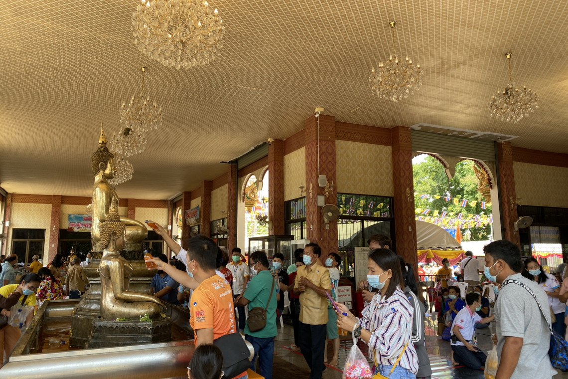 บรรยากาศตั้งแต่เช้าและตลอดทั้งวัน มีประชาชนได้เดินทางมาสรงองค์หลวงพ่อพระใส เพี่อความเป็นสิริมงคลในวันปีใหม่ไทย ที่บริเวณพลับพลาหลวงพ่อพระใส วัดโพธิ์ชัยพระอารามหลวง ในเขตเทศบาลเมืองหนองคาย กันเป็นจำนวนมาก ภายใต้มาตรการป้องกันการแพร่ระบาดของโควิด-19 อย่างเข้มงวด ทั้งการตรวจวัดอุณหภูมิ บริการเจลล้างมือ มีการจัดช่องทางการเข้า-ออกและจัดระเบียบการเข้าสรงน้ำองค์หลวงพ่อพระใส ไม่ให้เบียดเสียดกัน ซึ่งประชาชนที่มาสรงน้ำหลวงพ่อพระใส และทำบุญภายในวัดโพธิ์ชัย พระอารามหลวง ส่วนใหญ่เดินทางกันมาเป็นครอบครัว และกลุ่มญาติพี่น้อง