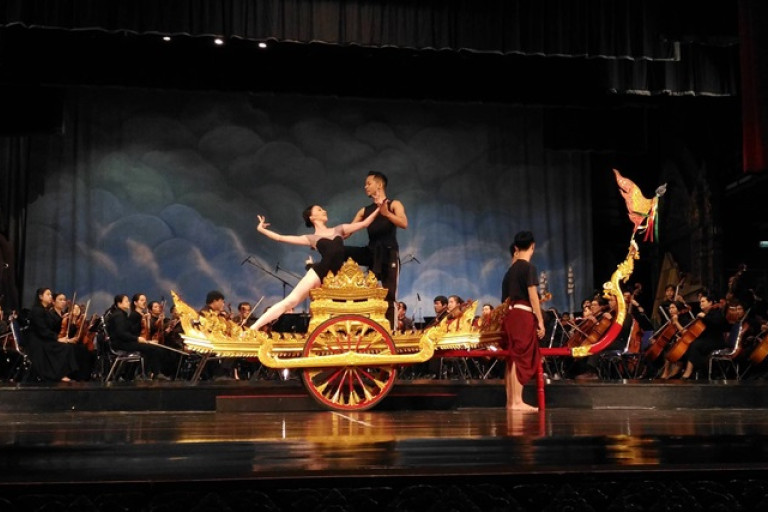 เมื่อวานนี้ (20ก.ย.60) ที่โรงละครแห่งชาติ กรมศิลปากรจัดการฝึกซ้อมวงดุริยางค์สากลการแสดงมหรสพสมโภชเนื่องในพระราชพิธีถวายพระเพลิงพระบรมศพพระบาทสมเด็จพระปรมินทรมหาภูมิพลอดุลยเดช เวทีที่3 เป็นการฝึกซ้อมร่วมกันเป็นครั้งแรกของ 13 วงดนตรีดุริยางค์สากลที่เข้าร่วมพระราชพิธี โดยภาคเช้า เริ่มจากการแสดงของกรมดุริยางค์ทหารบก กรมดุริยางค์ทหารเรือ กรมดุริยางค์ทหารอากาศ กองสวัสดิการ สำนักงานตำรวจแห่งชาติ วงดนตรีสากลสโมสรนิสิตจุฬาลงกรณ์มหาวิทยาลัย วงดนตรีกรมประชาสัมพันธ์ ส่วนภาคบ่าย เป็นการแสดงของวงดุริยางค์สากล กรมศิลปากร ร่วมกับสถาบันบัณฑิตพัฒนศิลป์ (สบศ.) วิทยาลัยนาฎศิลป โรงเรียนราชินี วงดุริยางค์ซิมโฟนีกรุงเทพฯ และอีกหลายวง ฝึกซ้อมร่วมกันบรรเลงบทเพลงพระราชนิพนธ์แล้วยังเปิดตัวฝึกซ้อมการแสดงบัลเลต์เรื่องมโนราห์ (Kinari suite) ร่วมกับวงดุริยางค์สากลครั้งแรกอีกด้วย