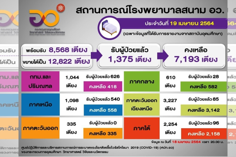 สถานการณ์โรงพยาบาลสนามในสังกัด อว. (ประจำวันที่ 19 เมษายน 2564)