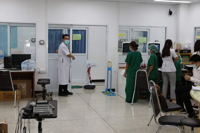 "ขณะนี้เรามีตั้งแต่ผู้ป่วยที่ต้องสงสัยรอผลตรวจ โดยจัดโซนภายในตึกสามารถรองรับได้จำนวน 14 คน คนไข้ที่มีอาการปานกลางจัดโซนไว้ให้ 2 ตึก สามารถรองรับได้จำนวน 20 คน ส่วนคนไข้ที่เข้ารับการรักษาเบื้องต้นแล้วเป็นอาการคงที่จะย้ายไปอีกตึกหนึ่งและรอกลับบ้านซึ่งรองรับได้16 คนและกำลังพิจารณาหาหอผู้ป่วยรองรับอีก 12 เตียง ในส่วนของคนไข้หนักซึ่งเป็นภารกิจหลักของเราสามารถรับผู้ป่วยได้ทั้งหมด 5 คน ขณะนี้จำนวนเตียงเต็มแล้วทั้ง 5 เตียง แต่เร็วๆนี้จะสามารถส่งผู้ติดเชื้ออาการหนักที่ทำการรักษาหายแล้วกลับบ้าน 1 ราย ก็จะทำให้เตียงหนักว่าง 1 เตียง ทำให้ตอนนี้ทางโรงพยาบาลได้ทำการจัดสรรหาหอผู้ป่วยรองรับผู้ป่วยหนักเพิ่มขึ้นอีก โดยใช้หอผู้ป่วยจำนวน 1 ตึกซึ่งจะสามารถรองรับผู้ติดเชื้ออาการหนักจนถึงขั้นวิกฤติได้อีก 5 เตียง โดยวันนี้จะเริ่มเข้าไปทำการปรับเปลี่ยนทันทีตามความเหมาะสมและได้มาตรฐานความปลอดภัยด้านสาธารณสุข"