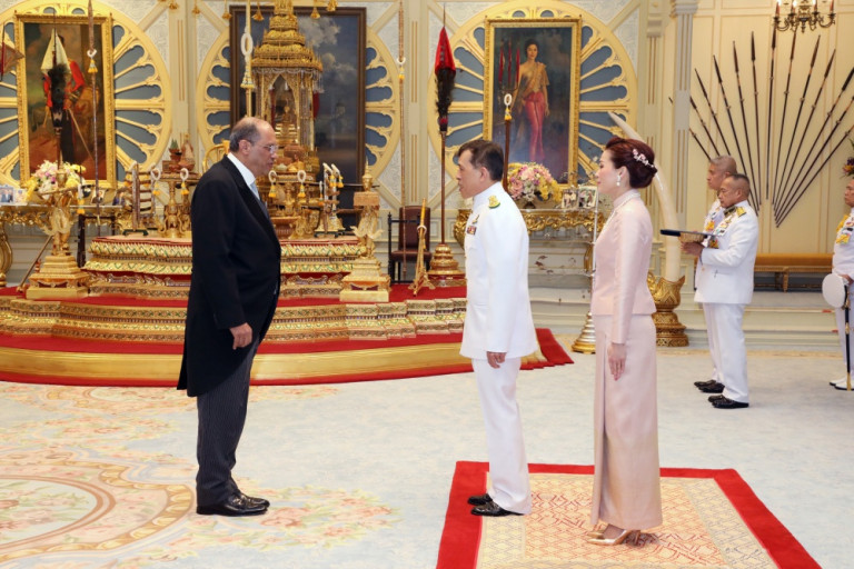 วันที่ 20 เมษายน 2564 เวลา 18.52 น. พระบาทสมเด็จพระเจ้าอยู่หัว และสมเด็จพระนางเจ้า ฯ พระบรมราชินี เสด็จออก ณ พระที่นั่งอัมพรสถาน พระราชวังดุสิต พระราชทานพระบรมราชวโรกาสให้ เอกอัครราชทูตต่างประเทศประจำประเทศไทย เฝ้าทูลละอองธุลีพระบาท ถวายอักษรสาส์นตราตั้ง ตามลำดับดังนี้
