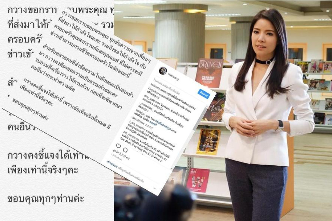 ทางด้านสาวกวาง ได้ออกมาปฏิเสธเรื่องดังกล่าวโดยโพสต์ข้อความผ่านไอจีส่วนตัวของเธอแล้ว ว่า ในชีวิตตนมีโอกาสได้พบกับสงกรานต์แค่ครั้งเดียวคือตอนไปสัมภาษณ์ออกรายการซึ่งมีตนเองเป็นพิธีกร และตนไม่เคยติดต่อเป็นการส่วนตัวใดๆ กับฝ่ายชาย