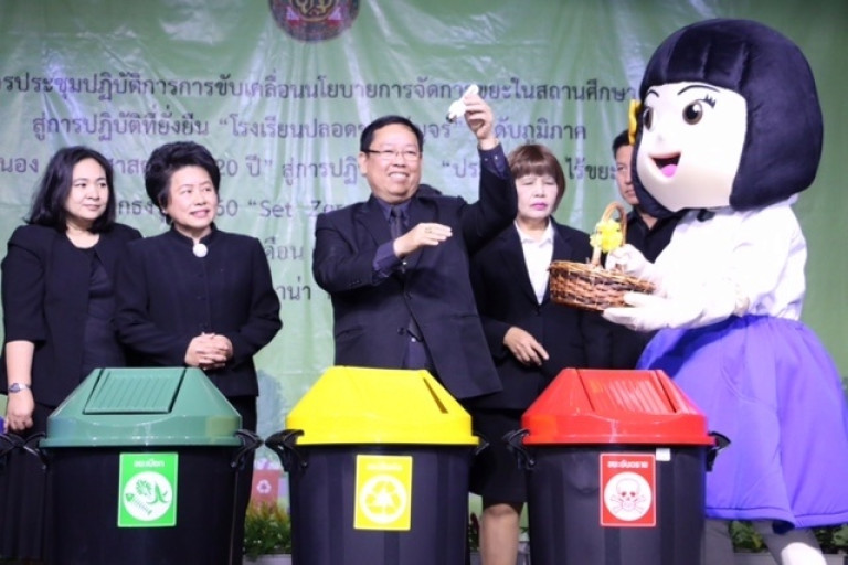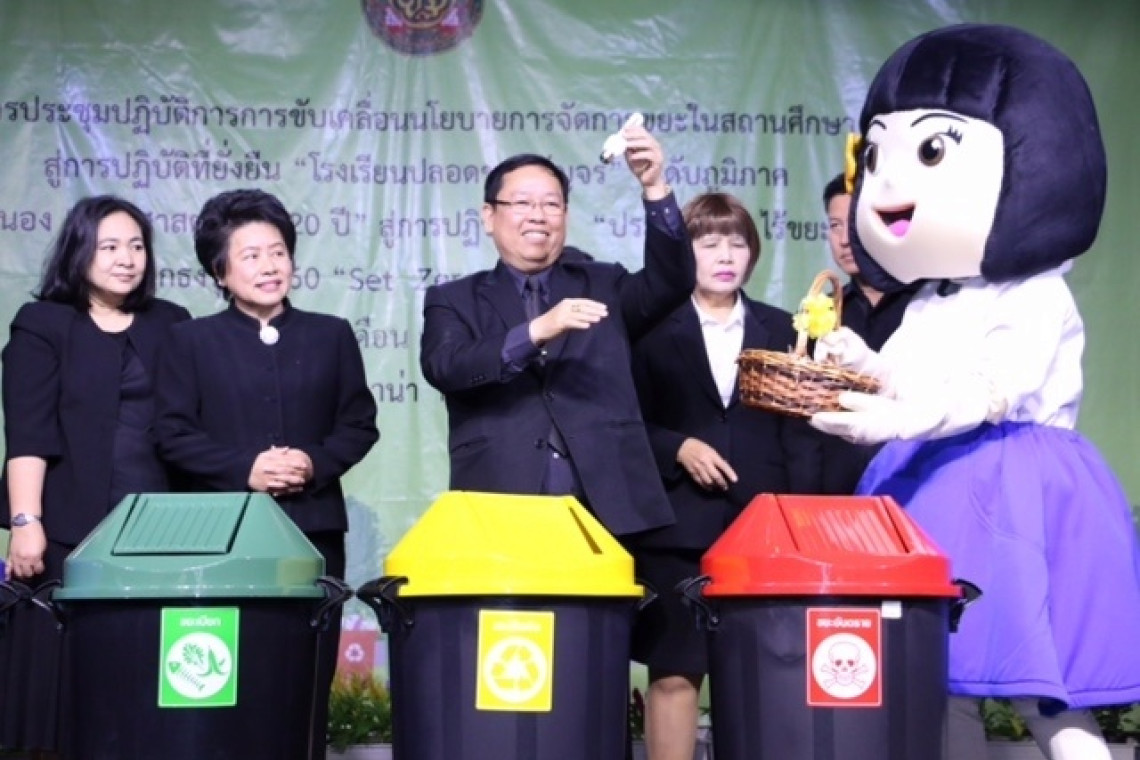สพฐ.เริ่มปฏิบัติการ"ประเทศไทยไร้ขยะ" ขับเคลื่อนพร้อมกันทั้งองคาพยพ"สพฐ.ได้เริ่มสร้างความตระหนัก สร้างจิตสำนึกการลดใช้พลังงาน จัดการขยะ และอนุรักษ์สิ่งแวดล้อมให้แก่หน่วยงานในสังกัด ตั้งแต่ 2ปีที่ผ่านมา เพื่อสร้างจิตสำนึกและความตระหนักให้กับครู นักเรียน รวมถึงผู้บริหาร ดังนั้น เมื่อสร้างสิ่งเหล่านี้แล้วต่อไปก็ต้องนำไปสู่การปฏิบัติ โดยต้องมีตัวชี้วัดที่ชัดเจน ซึ่งอาจจะเป็นลักษณะงบประมาณแลกเป้า โดยเขตพื้นที่การศึกษาทุกเขตจะต้องลดการจัดกิจกรรม แต่เน้นการปฏิบัติตามบริบทของโรงเรียน และตั้งเป้าหมายไว้ว่าในปี 2561จะเป็น "ปีแห่งการปฏิบัติ" โรงเรียนของ สพฐ.ทุกแห่งต้องไร้ขยะ"