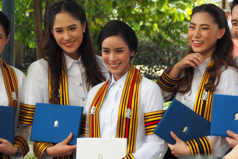 เมื่อเวลา 12.00 น.วันที่ 28 ก.ย.ณ จุฬาลงกรณ์มหาวิทยาลัย เหล่านักร้องนักแสดงได้เข้ารับพระราชทานปริญญาบัตรทั้งปริญญาตรีและปริญญาโทเป็นจำนวนมาก หนึ่งในนั้นคือ น้องร้องนักแสดงสาวมากความสามารถอย่าง “ขนมจีน กุลมาศ” ที่ได้เข้ารับพระราชปริญญาบัตรในครั้งนี้ อีกทั้งนักร้องสาว “ขนมจีน กุลมาศ” ได้จบปริญญามหาบัณฑิต จากคณะศิลปกรรมศาสตร์ จุฬาลงกรณ์มหาวิทยาลัย ซึ่งถือว่าเป็นนักแสดงสาวที่มีความสามารถมากคนหนึ่งเลยทีเดียว นอกจากนี้บรรยากาศภายในงานได้รายล้อมไปด้วยเหล่าคนบันเทิง ครอบครัว และแฟนคลับที่มาร่วมกันแสดงความยินดีอีกด้วย