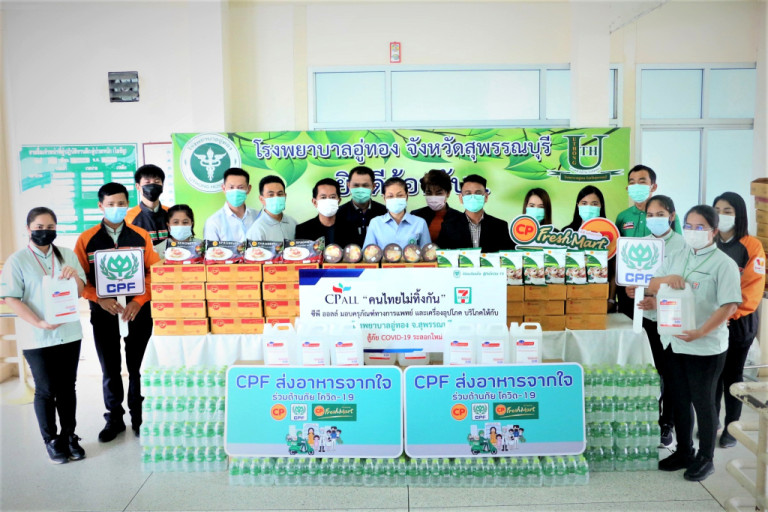 บริษัท เจริญโภคภัณฑ์อาหาร จำกัด (มหาชน) หรือซีพีเอฟ และ บริษัท ซีพี ออลล์ จำกัด (มหาชน) ร่วมกันมอบอาหารและครุภัณฑ์ทางการแพทย์สนับสนุนแพทย์ พยาบาล และบุคลาการทางการแพทย์ 3 โรงพยาบาล ในจังหวัดสุพรรณบุรี ภายใต้โครงการ “CPF ส่งอาหารจากใจ ร่วมต้านภัยโควิด-19” และ โครงการ "คนไทยไม่ทิ้งกัน" อย่างต่อเนื่อง ตามนโยบายเครือเจริญโภคภัณฑ์ ภายใต้โครงการ “ซีพี ร้อยเรียงใจ สู้ภัยโควิด-19”
