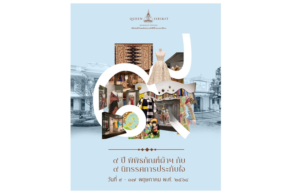 เนื่องในโอกาสครบรอบการดำเนินงาน ๙ ปี พิพิธภัณฑ์ผ้าในสมเด็จพระนางเจ้าสิริกิติ์ พระบรมราชินีนาถ เชิญชวนประชาชนร่วมสนุกกับกิจกรรมออนไลน์ “๙ ปี พิพิธภัณฑ์ผ้าฯ กับ ๙ นิทรรศการประทับใจ” เพื่อเปิดโอกาสให้ผู้ที่เคยเข้าชมพิพิธภัณฑ์ผ้าฯ ได้เล่าประสบการณ์และความประทับใจที่มีต่อนิทรรศการต่างๆ ผ่านช่องทางโซเชียลมีเดียของพิพิธภัณฑ์ฯ ได้แก่ เฟซบุ๊ก (Facebook.com : qsmtthailand) และอินสตาแกรม (Instagram : @queensirikitmuseumoftextiles) พร้อมรับของรางวัลพิเศษมากมาย ระหว่างนี้ - 17 พฤษภาคมนี้