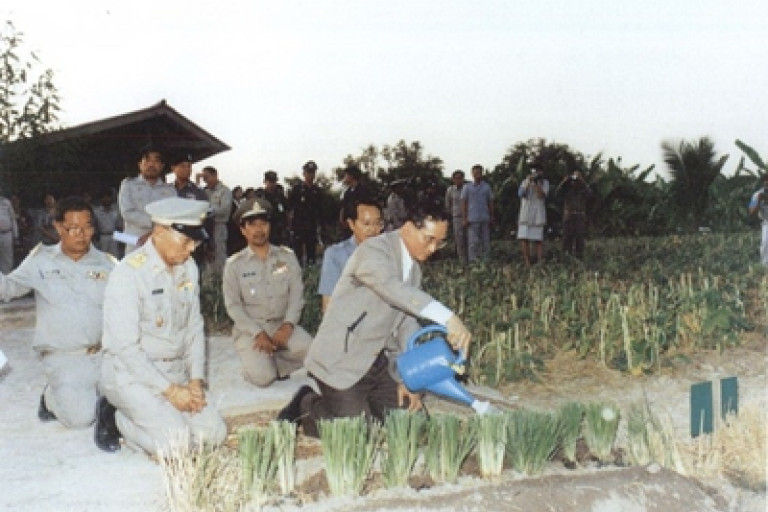“...ให้ศึกษา ทดลองปลูกหญ้าแฝกเพื่อป้องกันการพังทลายของดินในศูนย์ศึกษาการพัฒนาฯ และพื้นที่อื่นๆ โดยให้พิจารณาปลูกตามความเหมาะสมของภูมิประเทศ และควรเก็บรวบรวมข้อมูลเกี่ยวกับผลการศึกษา ทดลอง ให้ครอบคลุมทุกด้านด้วย...”